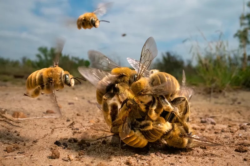 嗡嗡嗡:卡琳·艾格纳夺得2022年年度野生动物摄影大奖的这张蜜蜂争夺交配权瞬间图片花了数周时间才成功