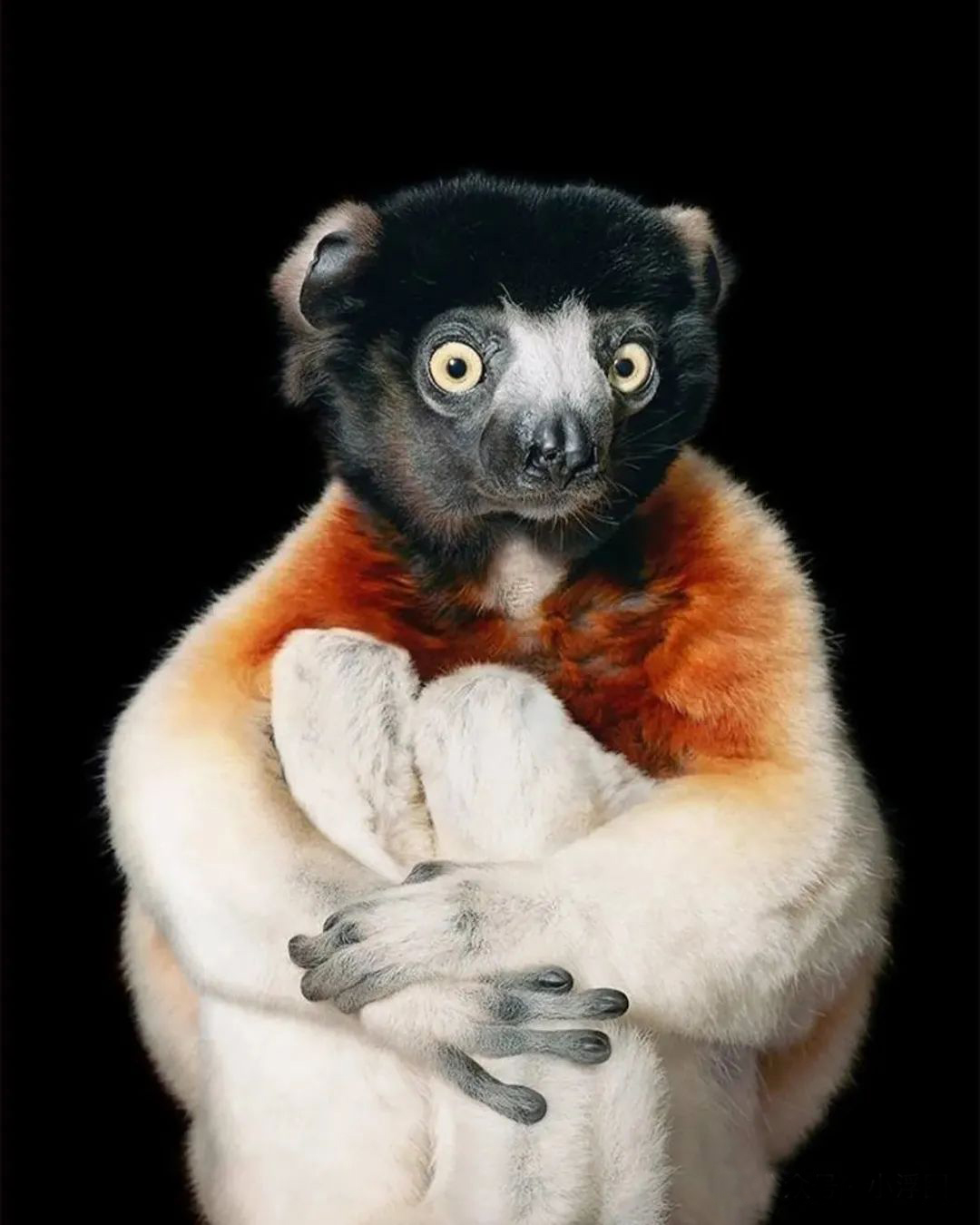 不同于一般野生动物摄影,Tim Flach 将动物们放置在对比鲜明的背景布幕之前,动物直视镜头,有如人物肖像一般。这是为什么呢?