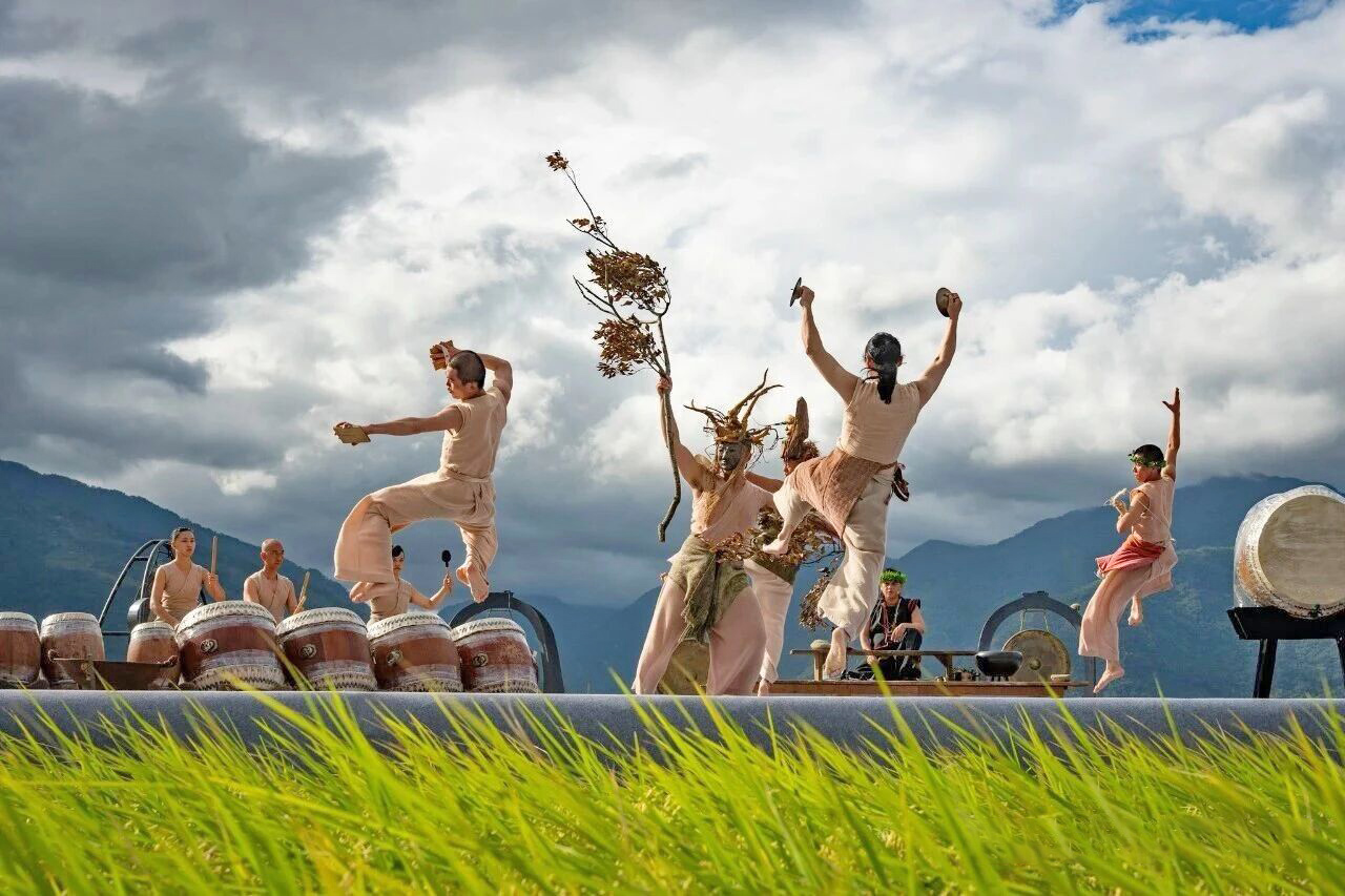 今年池上秋收稻穗艺术节进入第 17 年,以「回到土地、回到灵魂」为题,优人神鼓创办人刘若瑀将桑布伊的原创音乐与吟唱,融合优人艺术总监黄志群的鼓与艺,交织成一场跨界剧场,带领观众走入一场神圣的仪式——与自然共同呼吸,与自己的灵魂重新相遇。