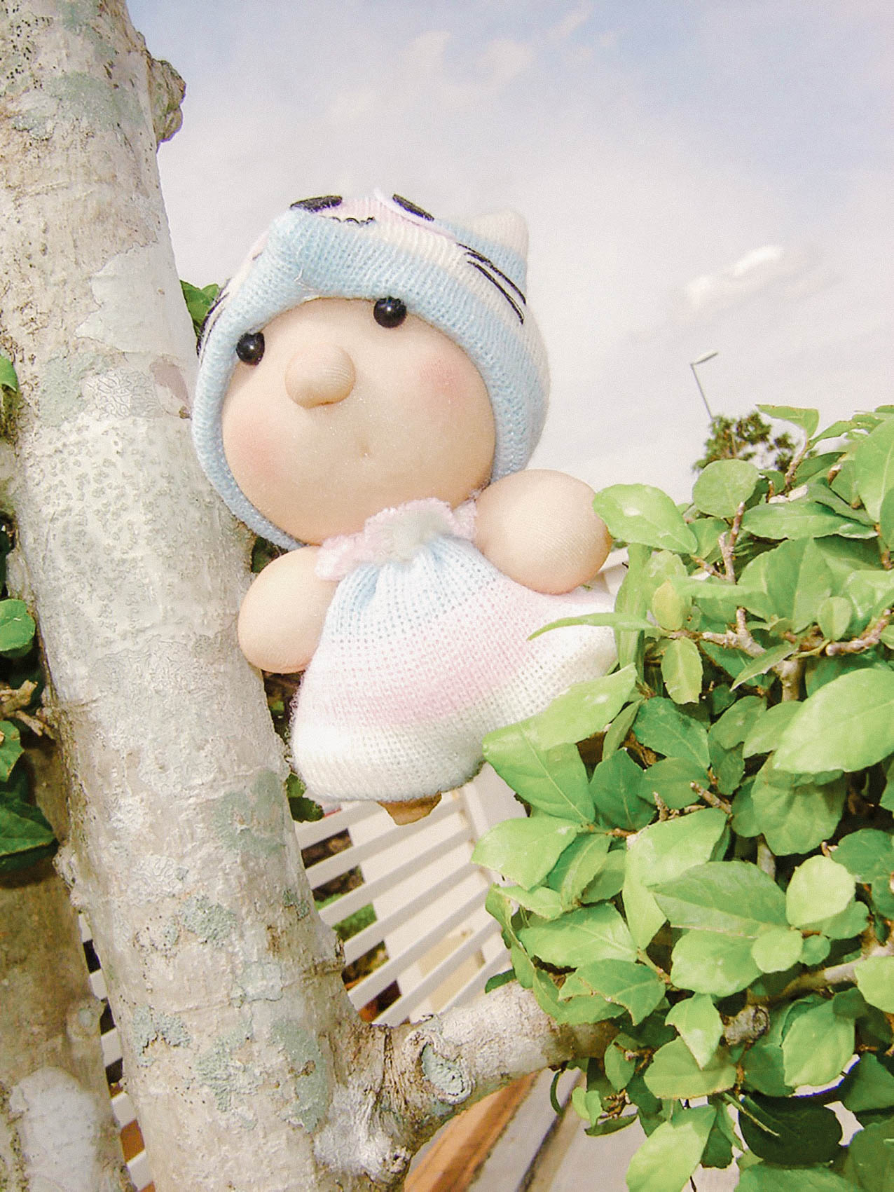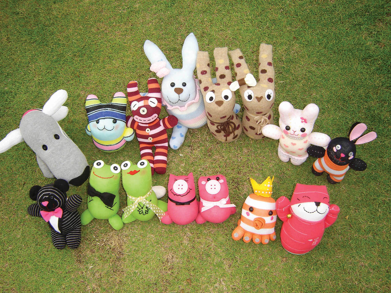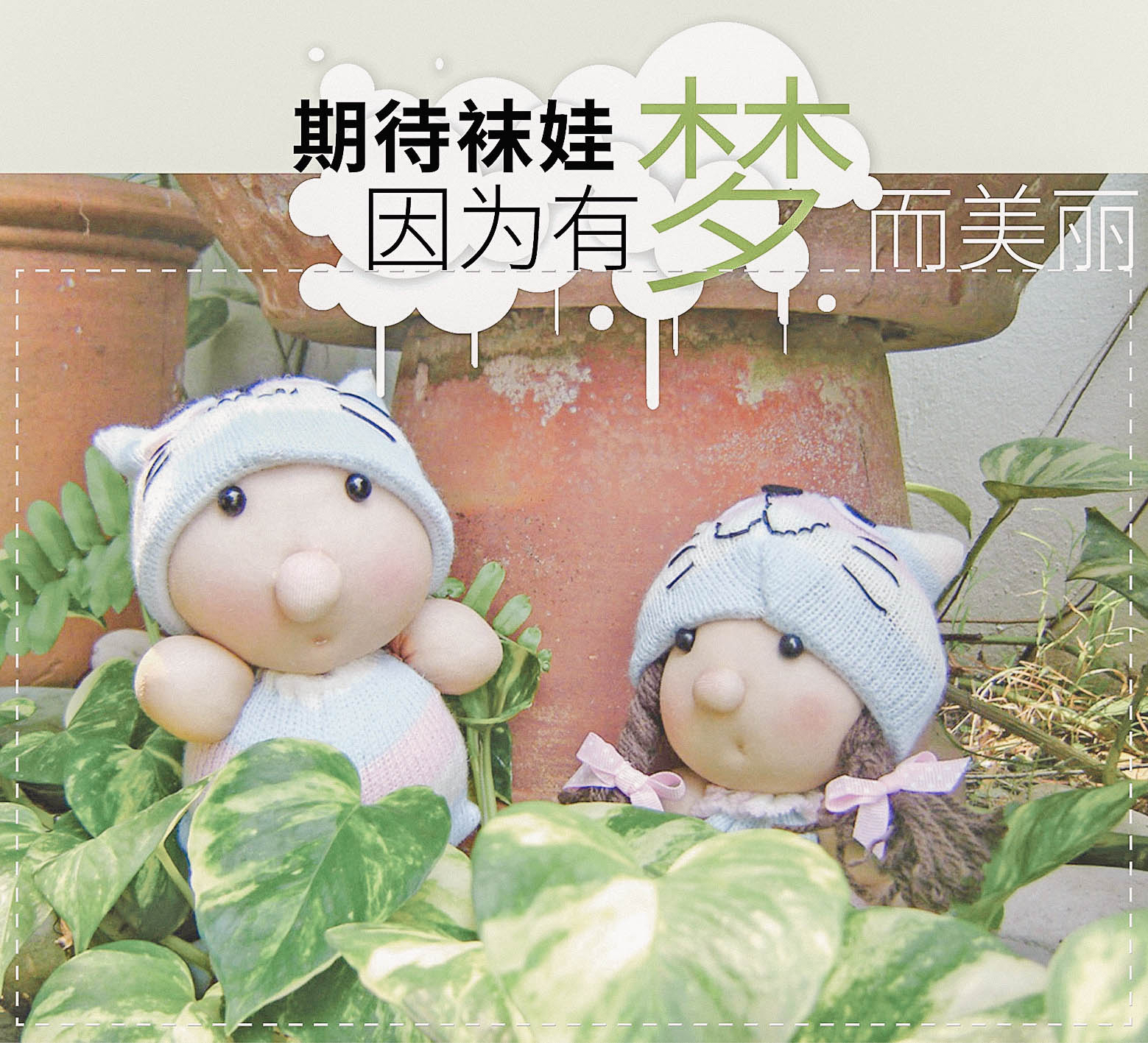 游学台湾时,在台北的某间书店偶然邂逅了“袜娃制作”一书,回来后就一口气制作了二、三十个袜子娃娃……。当一针一线缝制袜娃时,那种感觉犹如妈妈诞下新生宝宝的“幸福感”,每回都抱着期待与欣喜的心情去迎接每一个袜娃的到来。如此这般,我成了一个“多产妈妈”。对我而言,每一个袜子娃娃都是“独一无二”的,将自己的心思、创意融入在制作袜子娃娃,感觉好像赋予每一个袜娃一个生命与故事。有些时候把这些独特礼物送给朋友,看他们对袜娃爱不释手的感动,相信送礼与收礼的人都感觉温暖与快乐。