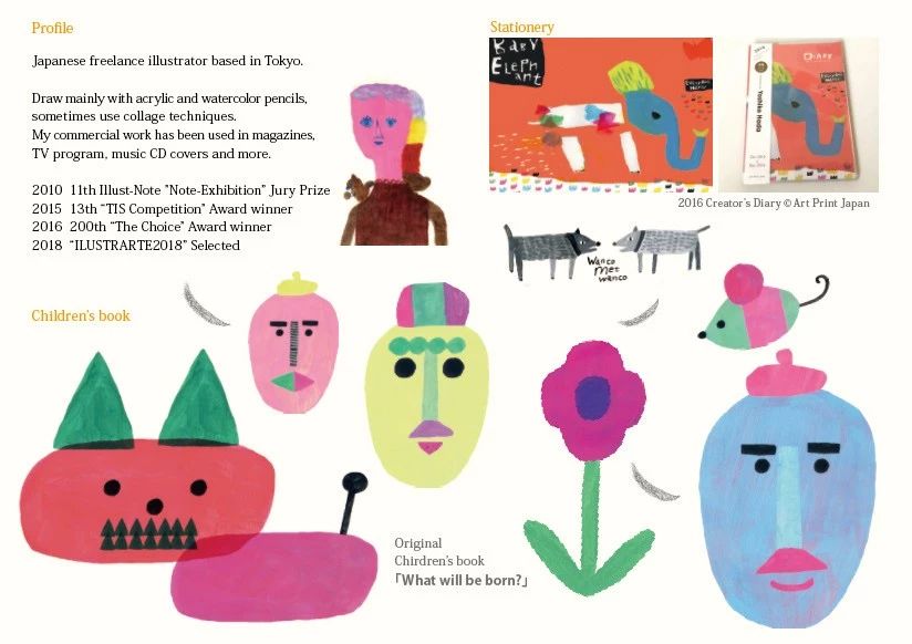 波田佳子的插画乍一看像是小朋友的涂鸦,简单的颜色,歪歪扭扭的人物形象,勾勒出一幅幅稚趣可爱的画面。强烈的手绘感让人眼前一亮,他笔下的人物即使没有表情,但极具张力的姿态像一个调皮的小朋友。用孩子的眼光去看待这个世界,这个小世界真是让人印象深刻~