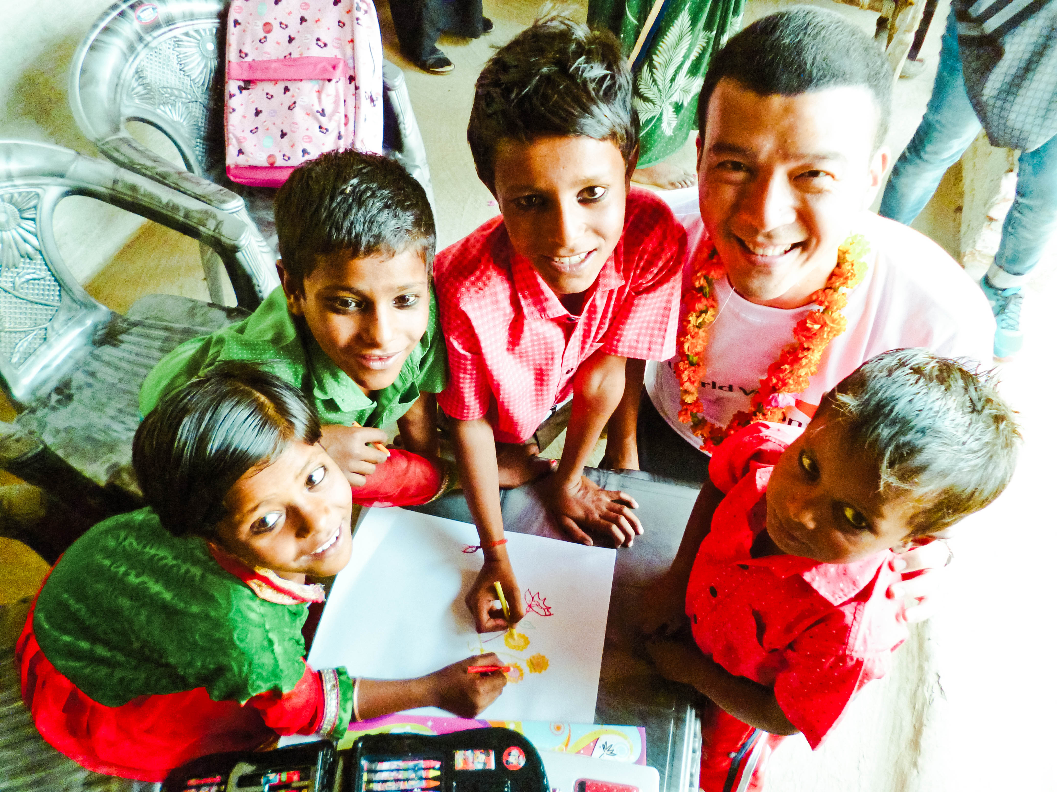 随遇而安,随缘也自在,印度家庭取出食物招待来自远方的客人,甜甜的水一放下来,不到一分钟就沾满了苍蝇。大家都劝剑锋不要喝,怕水源不干净。但是看到主人家盛意拳拳,他把水接过手上,在苍蝇parking之前,赶快喝完。 “这是他们认为最好的食物,用来招待远方来的客人”。就这么简单的理由,他也吃了好些糕点。