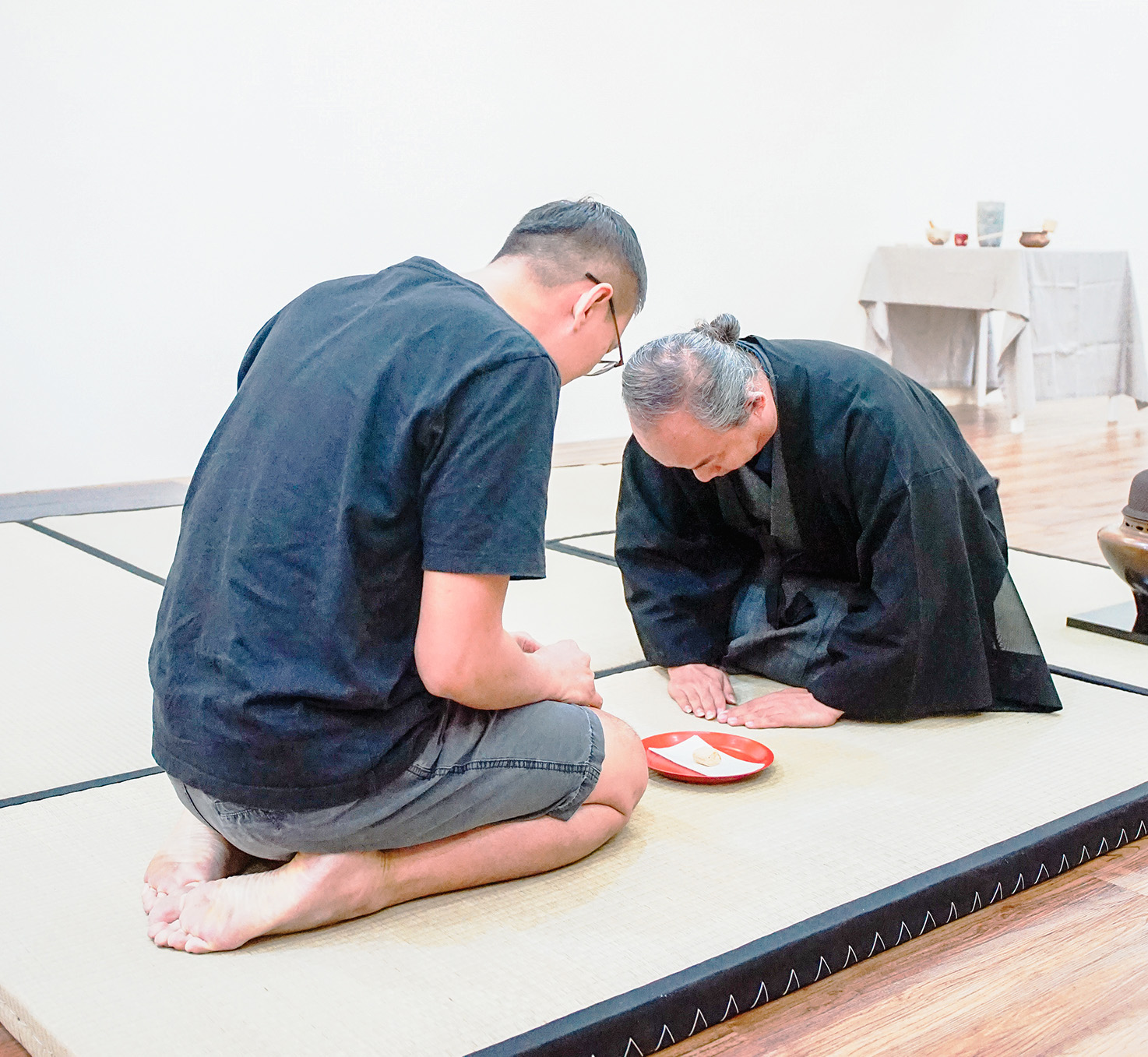 在日本茶道不只是喝茶,也是探究人与人之间交流的礼仪之道,透过茶和对方心平气和、心灵交流的方式,藉由这样的过程重新审视自己内心世界。茶道在日本是精致文化的表征,不论是茶具的摆设位置、持拿茶碗的方式与动作顺序,都有严格规定,茶道体验课中,主客双方在礼节度之中,藉一举手一投足表现的款待、感谢之情,马老师强调:皆始于礼,终于礼。