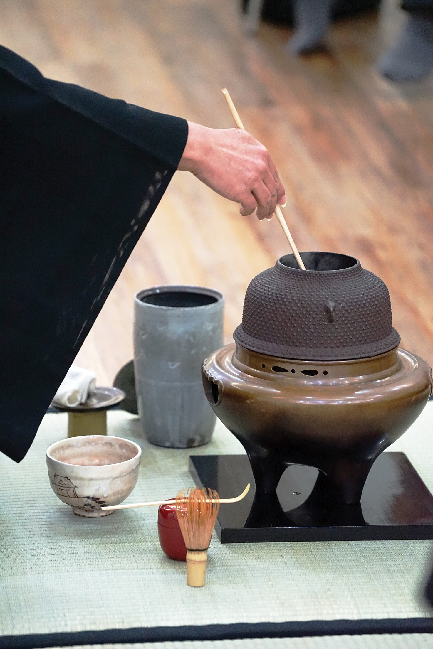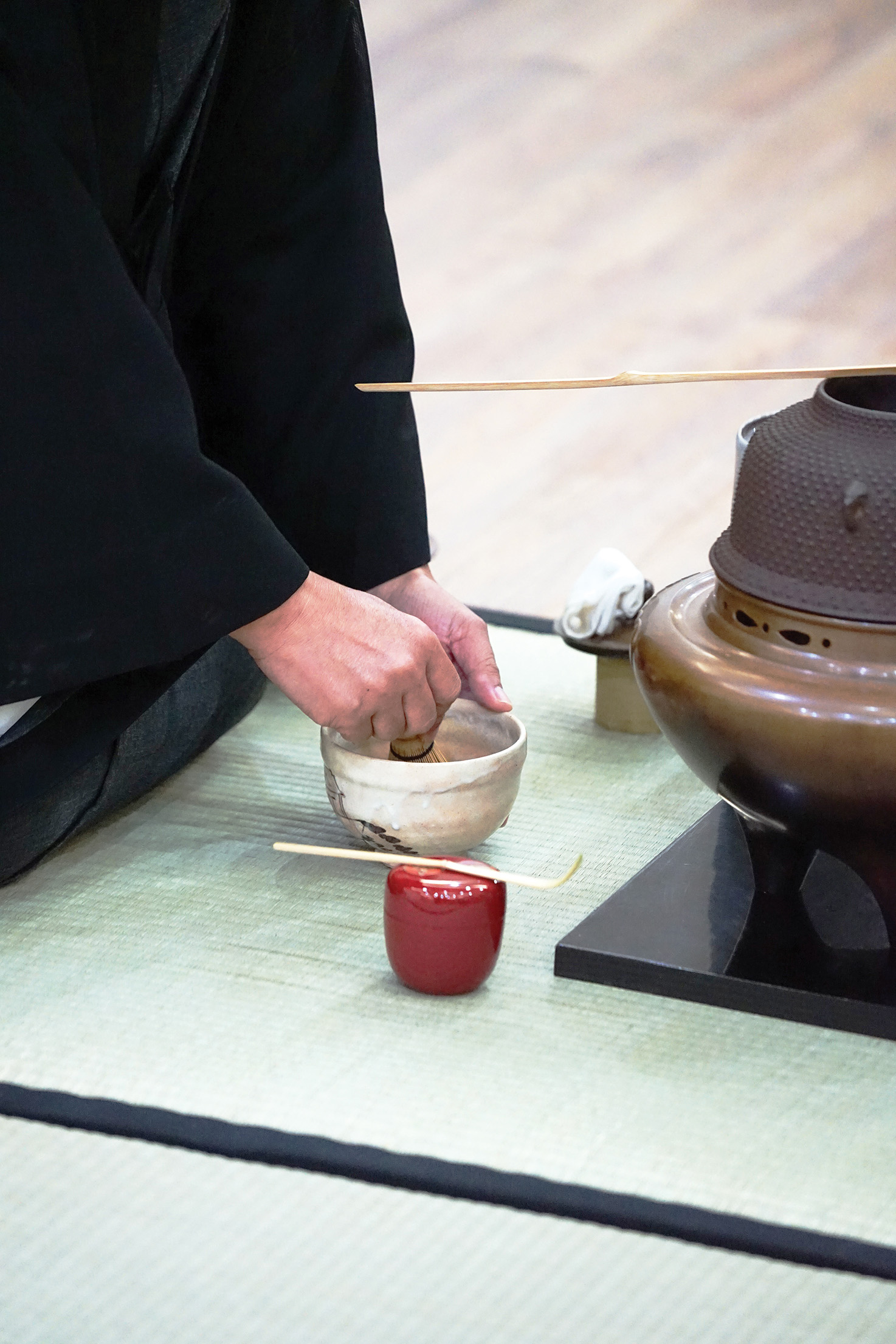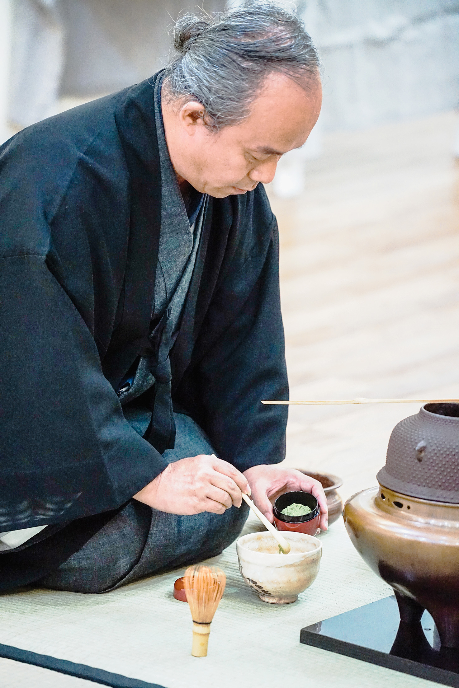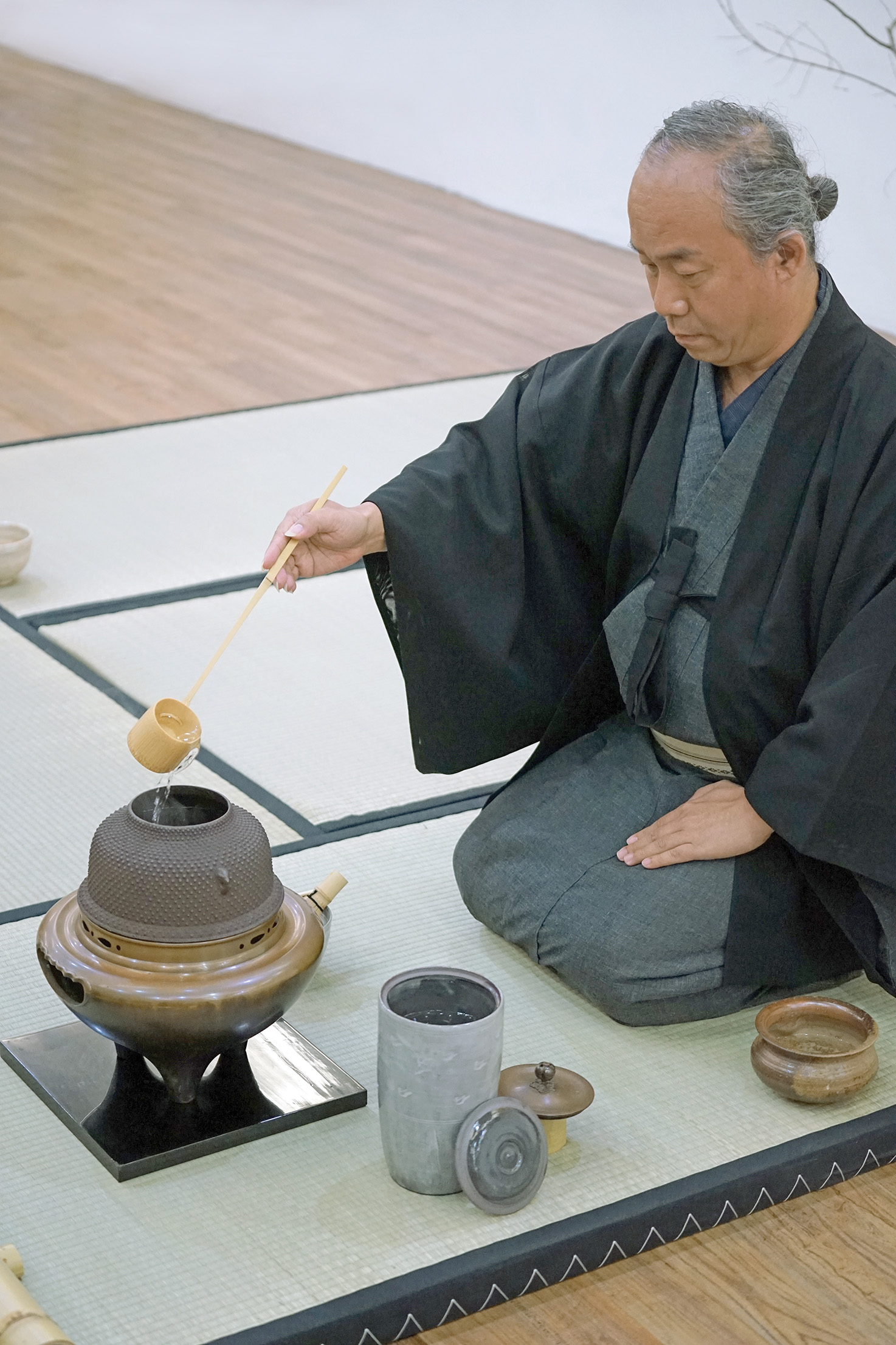 “日本茶道的形成,融合了主要是中国文化中的礼、茶和禅宗思想,以及日本神道思想而成。其中的禅宗思想成份决定了茶道文化的特色,使得茶道从一般的艺术与美的修养技艺中独树一帜。而它具体展现在茶人的点茶与日常生活中;日用寻常的喝茶与吃饭,因为注入了“专注”、“当下”、“观照”而使普通的生活内容变得更接近美与寂静,从而达致生命的安顿。”里千家茶道老师马宗俊于吉隆坡大城堡“城邦阅读花园”的智慧楼,作日本里千家茶道演示交流会上,说了这么一段开场白。