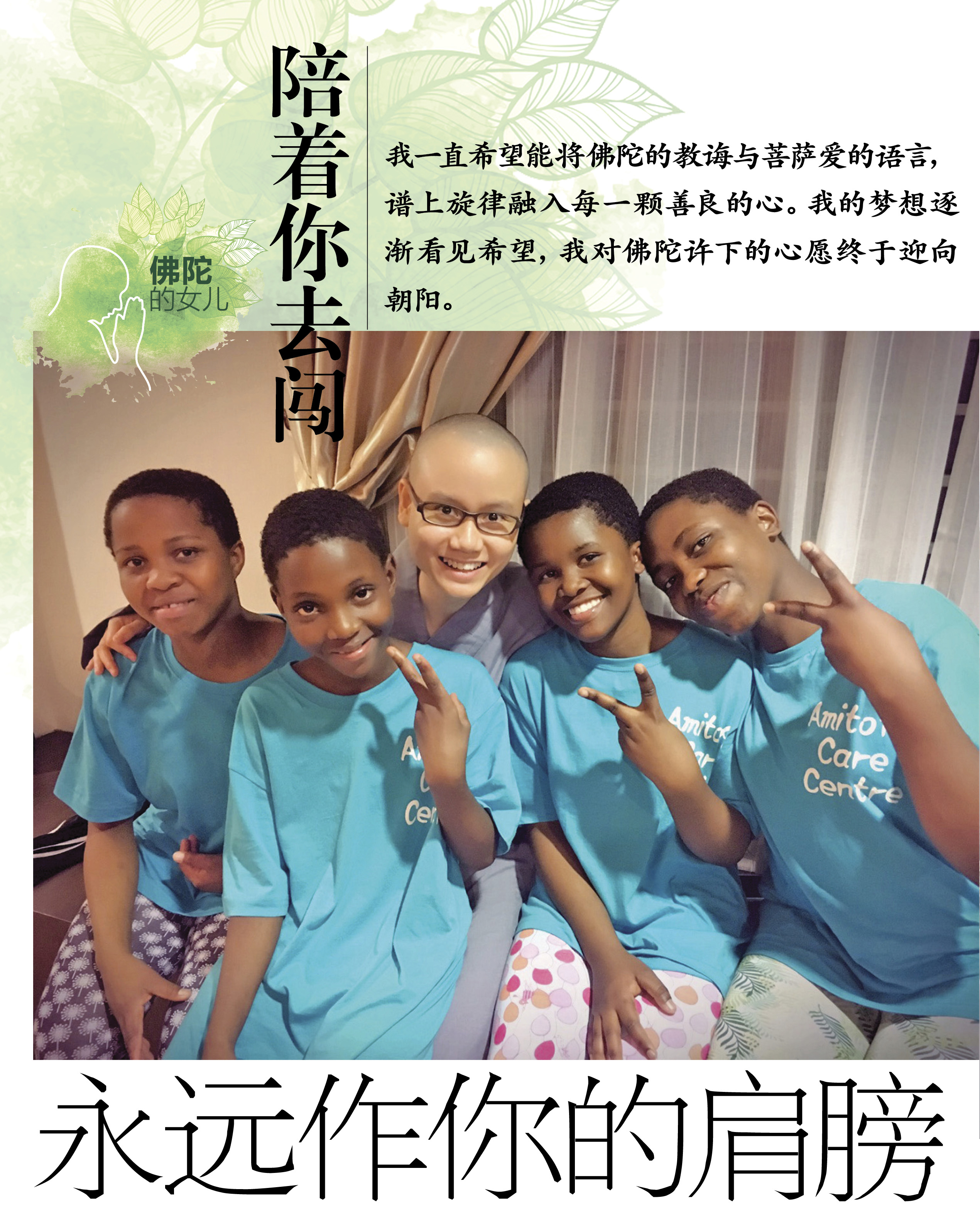 人心最弱的地方是“舍不得”,感情就在这块柔软上,我将它留给了孩子!透过旋律告诉他们,佛陀的家和我们的爱,永远可以让你停靠,支持你向前迈进!相信所有助养爸爸妈妈有着和我一样的感受,未来更需要您们继续给孩子更多的温暖。
