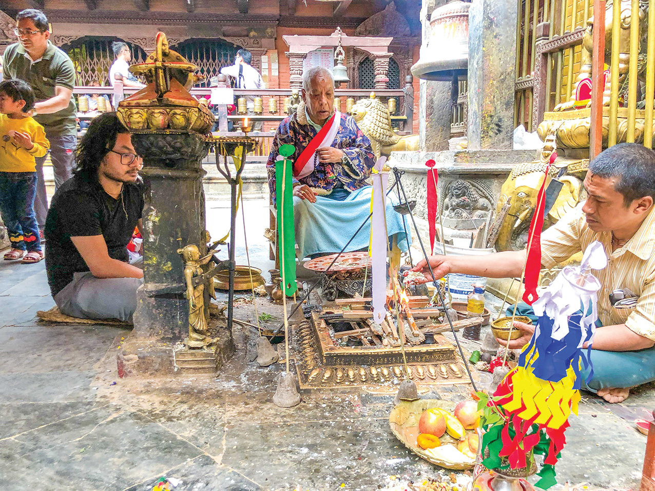 导游与我们说,尼泊尔曾是印度教君主制国家,对于佛教全面打压,因此境内不见出家众。“要是被发现信仰佛教,是会被捉去坐牢的啊。”她说。于是释迦族肩负了传承佛法的重担,以在家人的身份,一代又一代传承着佛陀的智慧,以及古老的仪式。