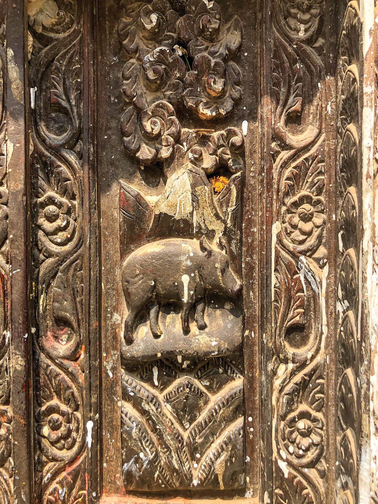 恰克拉费力地用中文单字与不流利的英语告诉我,他参与了这寺庙的修复工作,壁上的铜雕,正是他的手艺。我恍然明白,他如斯渴望我们到寺庙来,甚至不惜自掏腰包给我们买门票,是因为想与我们分享他的喜悦——释迦族向来都以自身的手艺为荣。