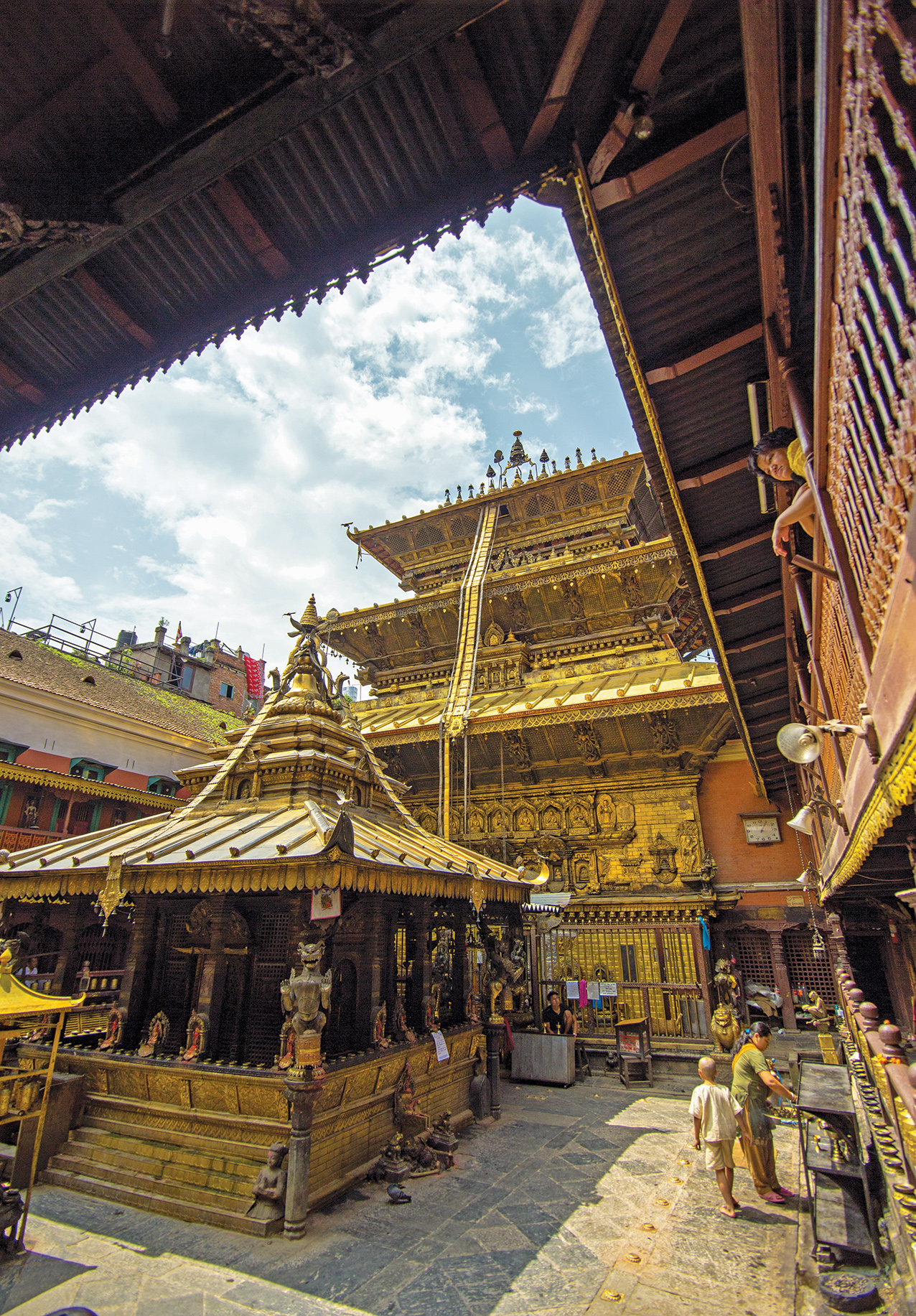 黄金寺又称克瓦寺(Kwa Bahal),位于古城帕坦,与杜巴广场(Durbar Square)仅徒步距离。黄金寺不大,建于西元12世纪,以华丽的镀金雕饰与精致的铜雕让人印象深刻。金碧辉煌之余,雕刻的密集实属叹为观止,细致的程度堪称鬼斧神工。
