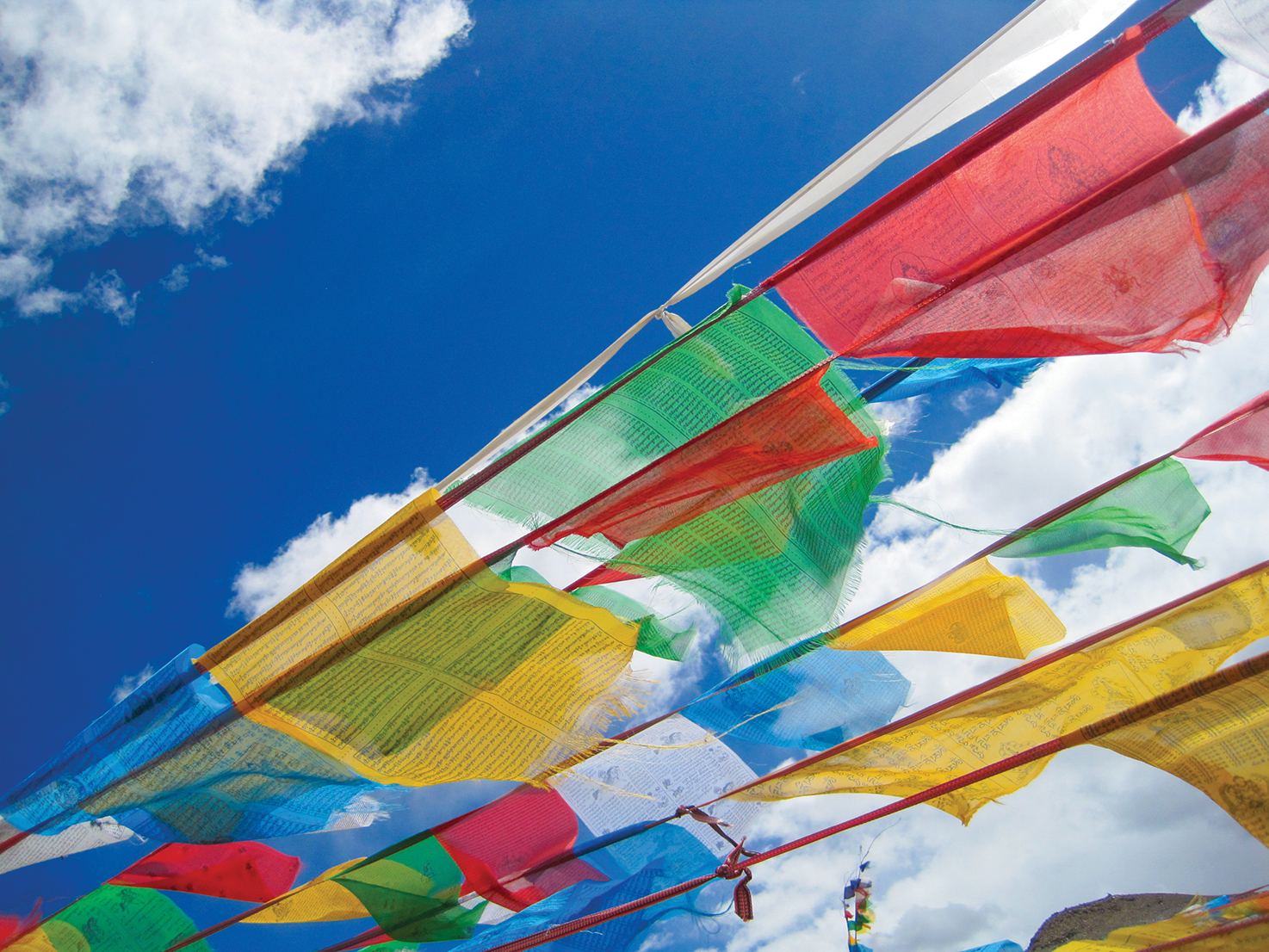 从拉萨到日喀则、珠峰大本营、纳木错,我们的小巴攀越了几座高山及高原,一路上都可见到经幡在藏民的居屋旁或山崖旁飘扬。藏民相信,在印有经文的七彩经幡写上名字,然后挂在山边,他们的祈愿便可传送予天地间的神明。因此,无论到哪里,都有人向我们兜售经幡。