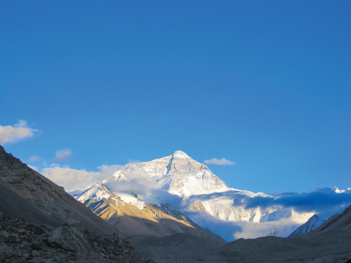 在前往珠峰大本营途中那委婉曲折的道路,不知是用了多少人的血汗建设而成;还有远方蜿蜒千里的喜马拉雅山脉,眺望白雪XX的世界顶级山峰如“吉康峰”、“卓奥友峰”、“洛子峰”、“马卡鲁峰”。我们一行人很幸运的得到珠穆朗玛峰的厚爱,在我们抵达的那一天傍晚即拨开其周围的云层向我们展露其壮丽的雄姿,向我们传达着其守护世界的使命。