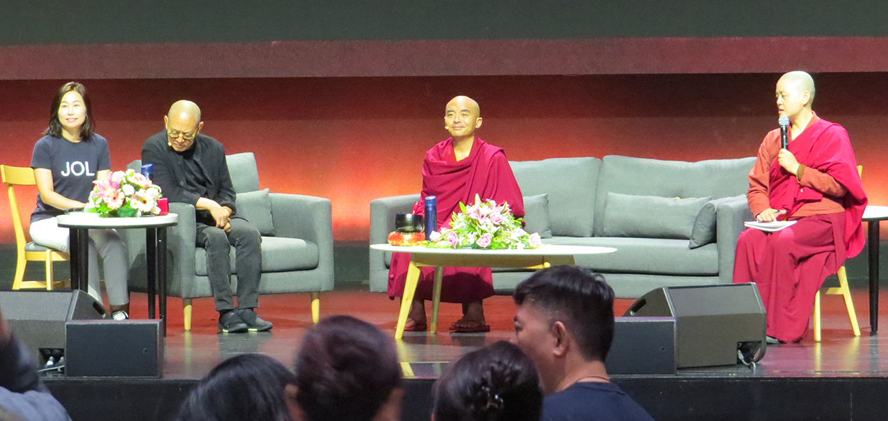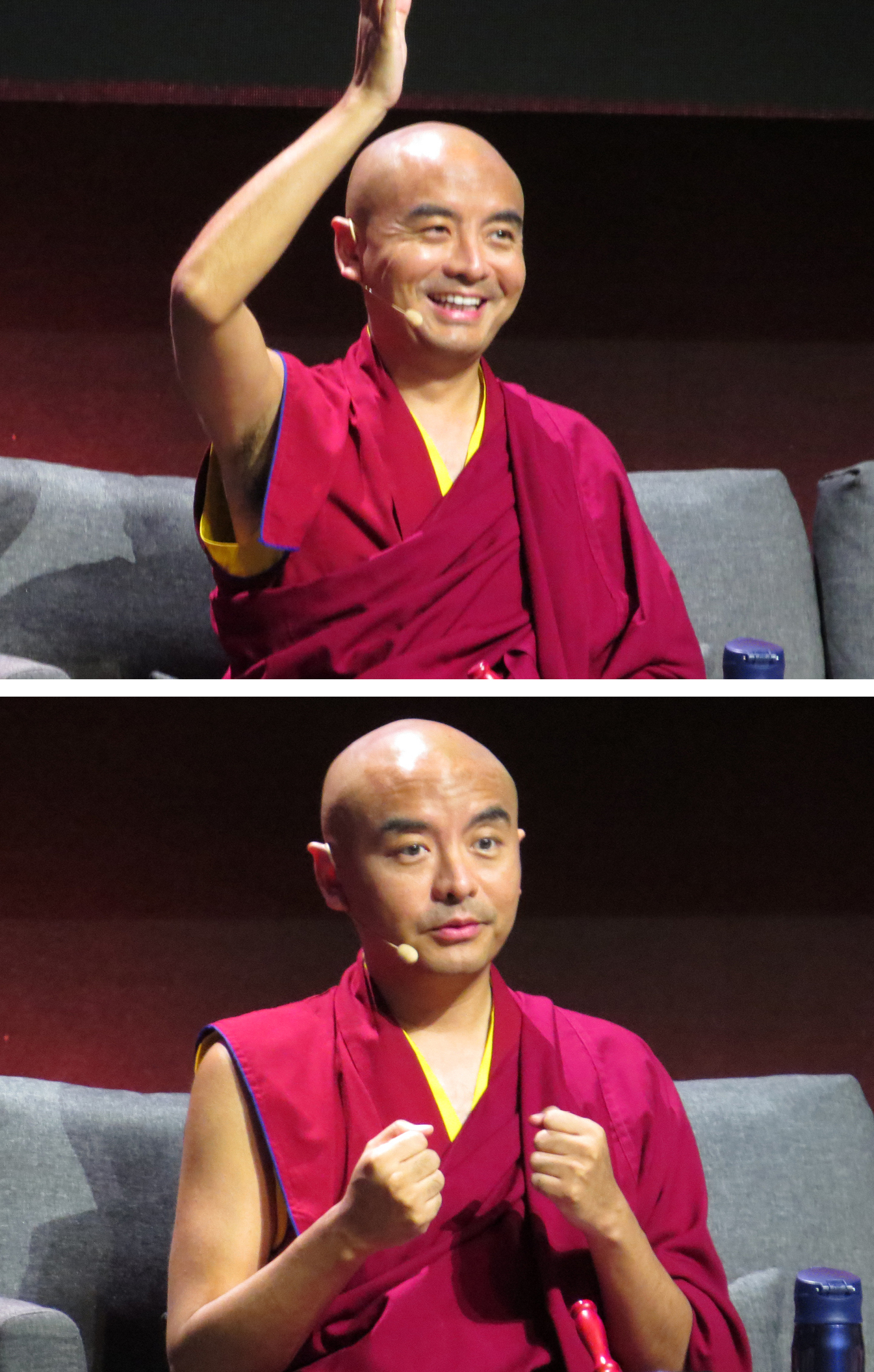 明就仁波切听到这里也分享了他小时候得恐慌症的经历。即便生长在喜马拉雅山那样优美的环境和拥有非常好的家庭,可是恐慌就像是影子一般跟随着他。