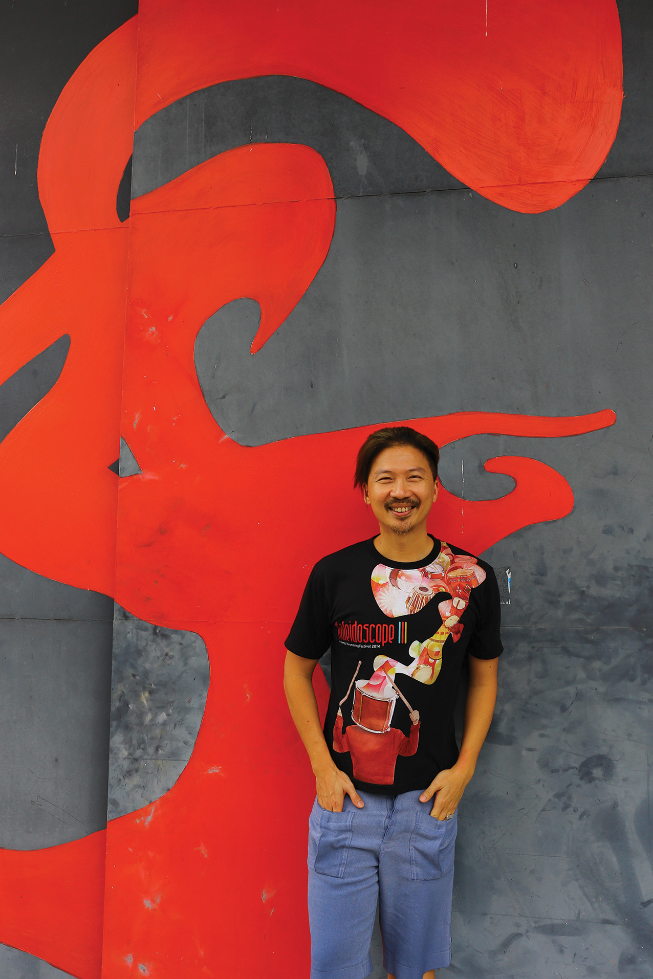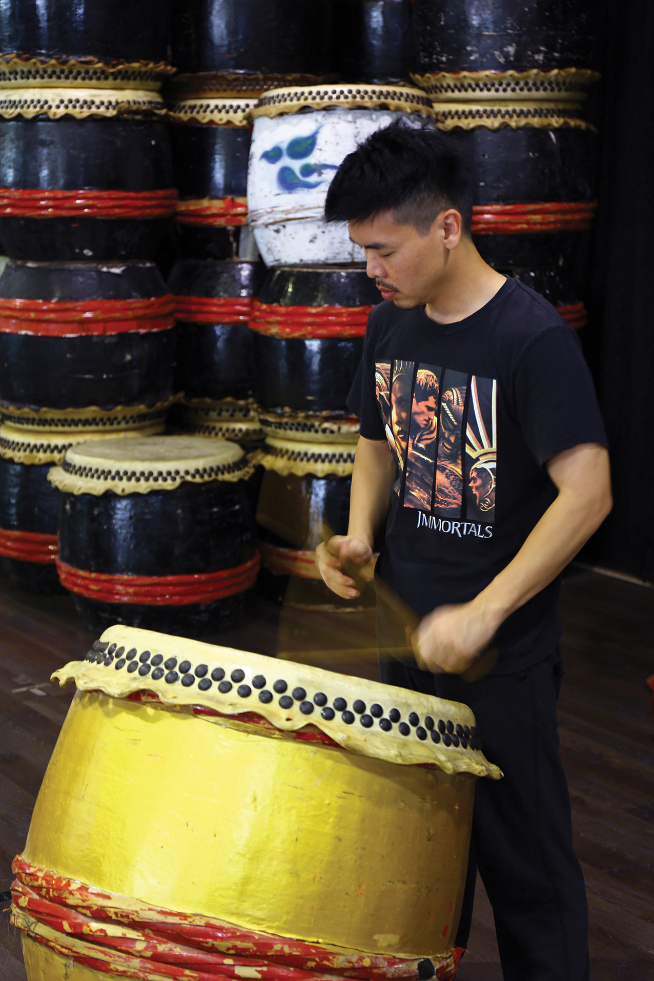 鼓声,对吴圣雄永远是种召唤,“鼓声,有种直接的力量,直接穿透内心,震撼整个身体。”他早在中学时期加入铜乐队,开始爱上打鼓,但也只是单纯的喜欢,最后才慢慢的从廿四节令鼓融入其他种族的文化及音乐元素,让打击乐更精彩,“原来鼓中也有音乐,有节拍,每一个击鼓人心中都有拍子。”