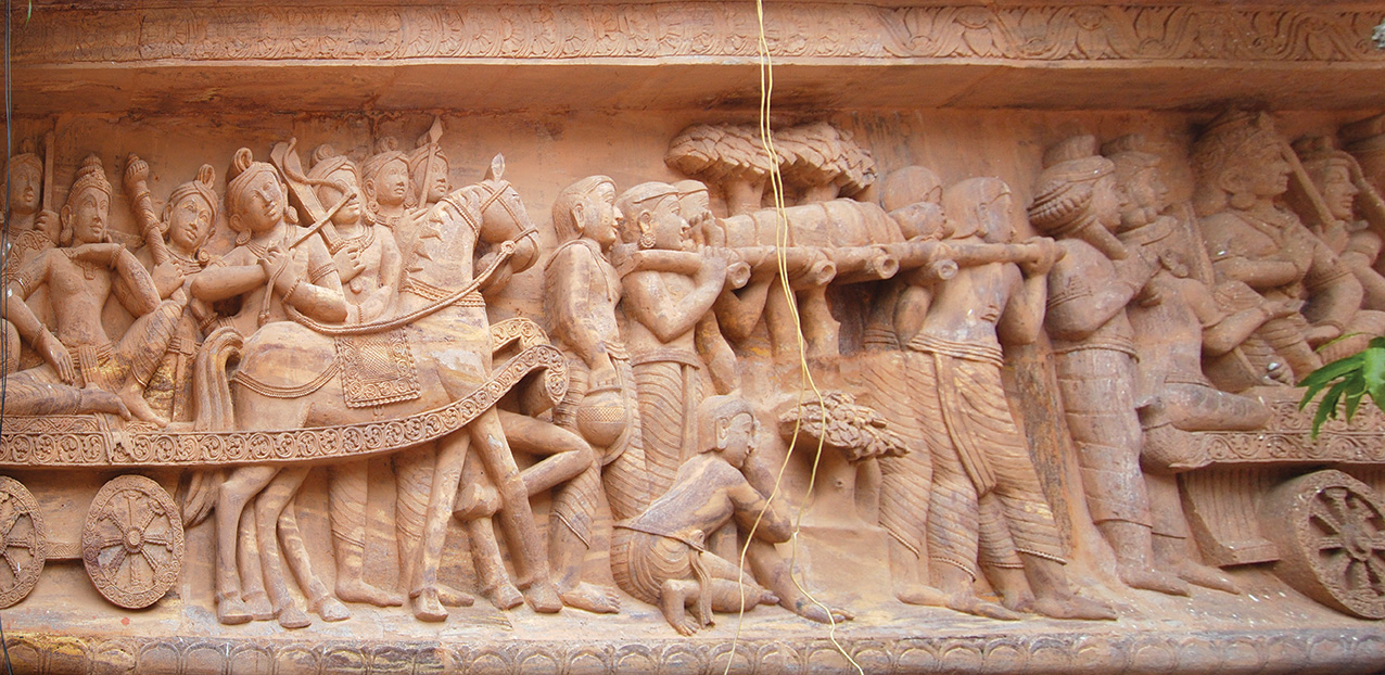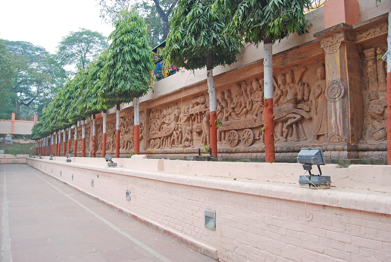 在菩提伽耶有一幅墙,刻画佛陀的故事。摄影队的志工告诉我,是卢翠婷发起找人刻画。问起卢翠婷,她说只想到佛陀的故乡,应该有一面墙专门描述佛陀的故事。就是这么单纯的理由。我们于是走在圣地朝圣时,可以更了解佛陀,同时升起更多的慈悲心。