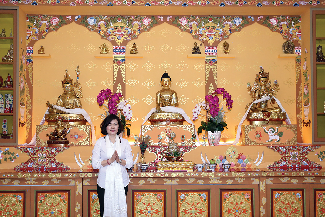 卢翠婷八、九年前认识法王,认识的过程非常有趣,一次去参加法王的祈愿法会,法王在法座上端然安坐,卢翠婷却站在反方向的对面。她踮起脚,老半天看不到法王。于是和同去的朋友说:“为什么我看不到的?法王在哪里?”