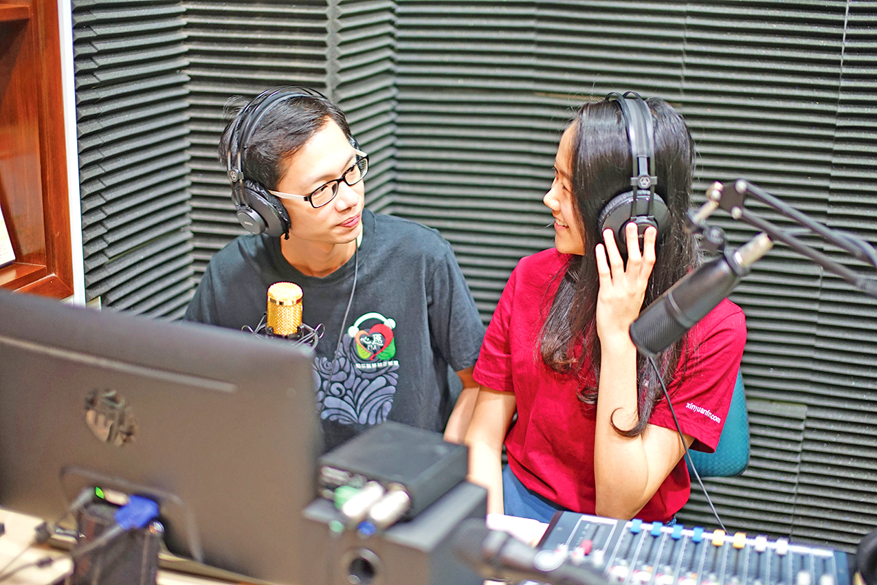 他们的广播室小小的, 却承载他俩对佛法深切的敬爱, 以及他们对他人所抱持的关怀。一人一枝麦可风, 他们以温柔有爱的音声在空气里飘扬传播佛陀的话语, 与有心人分享佛陀的慈悲和智慧, 以自身的修持体验和感悟, 为社会, 为人们燃点光明。