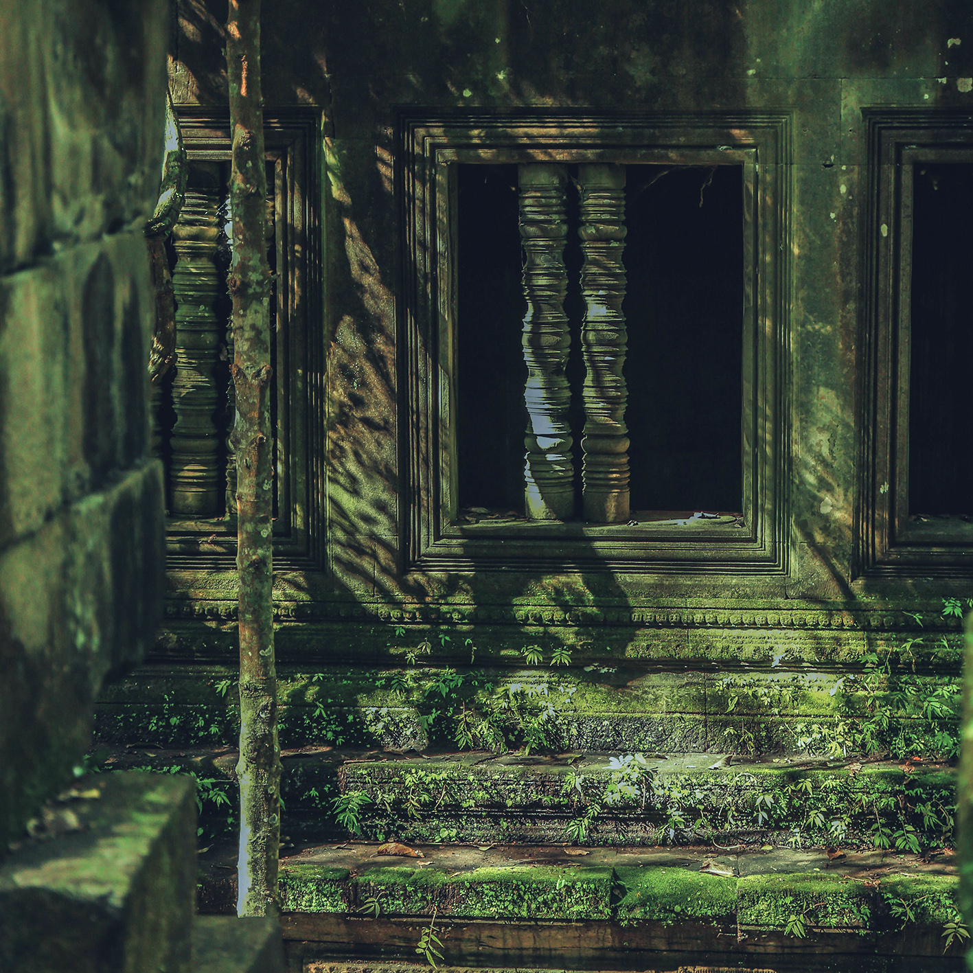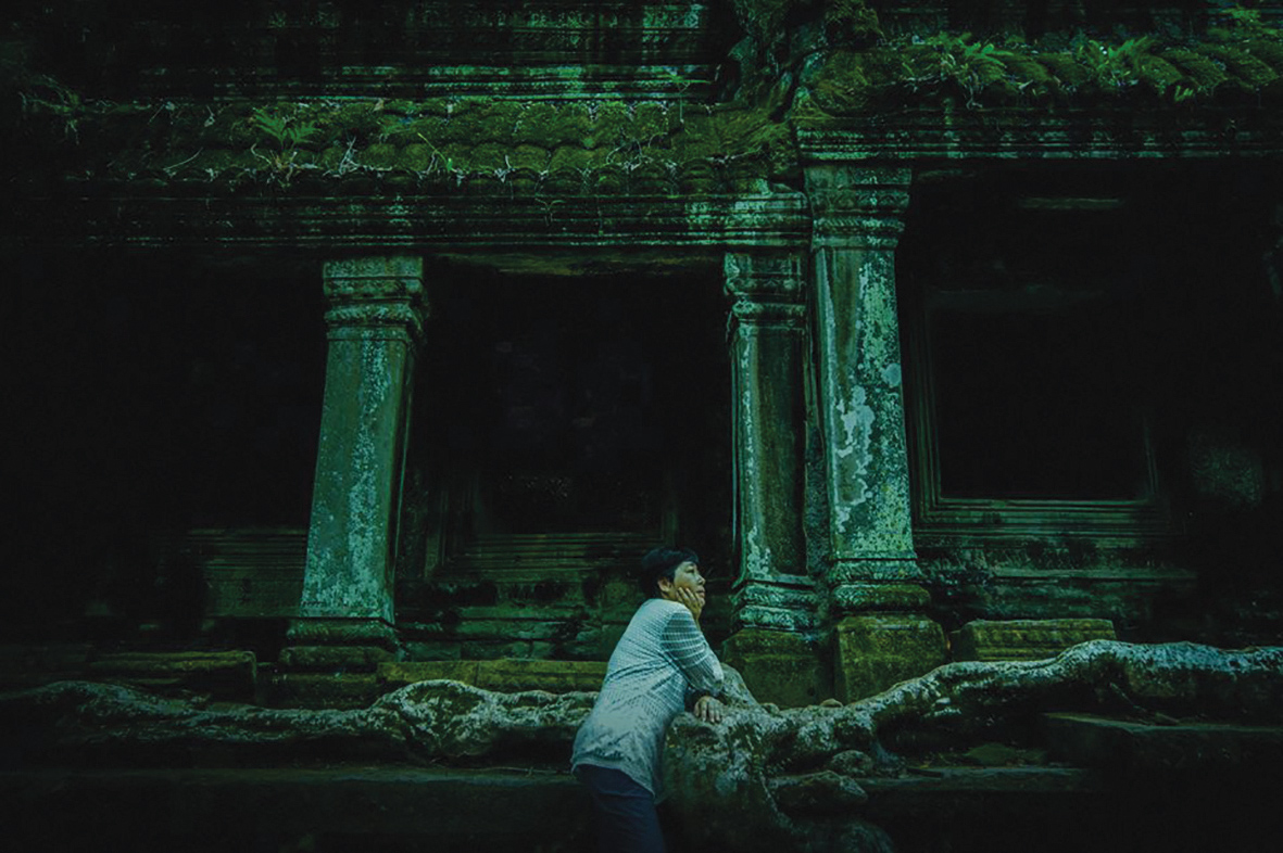老树根姿态雄伟优美,就像守护这片吴哥巴扬寺废墟场的巨人,不言不语,静待树林高处初日阳光一线一线照亮高塔上一面一面微笑,使人抬头仰望的时候,心情变得庄严肃穆。