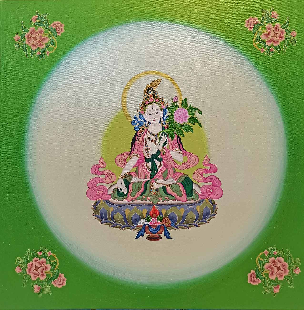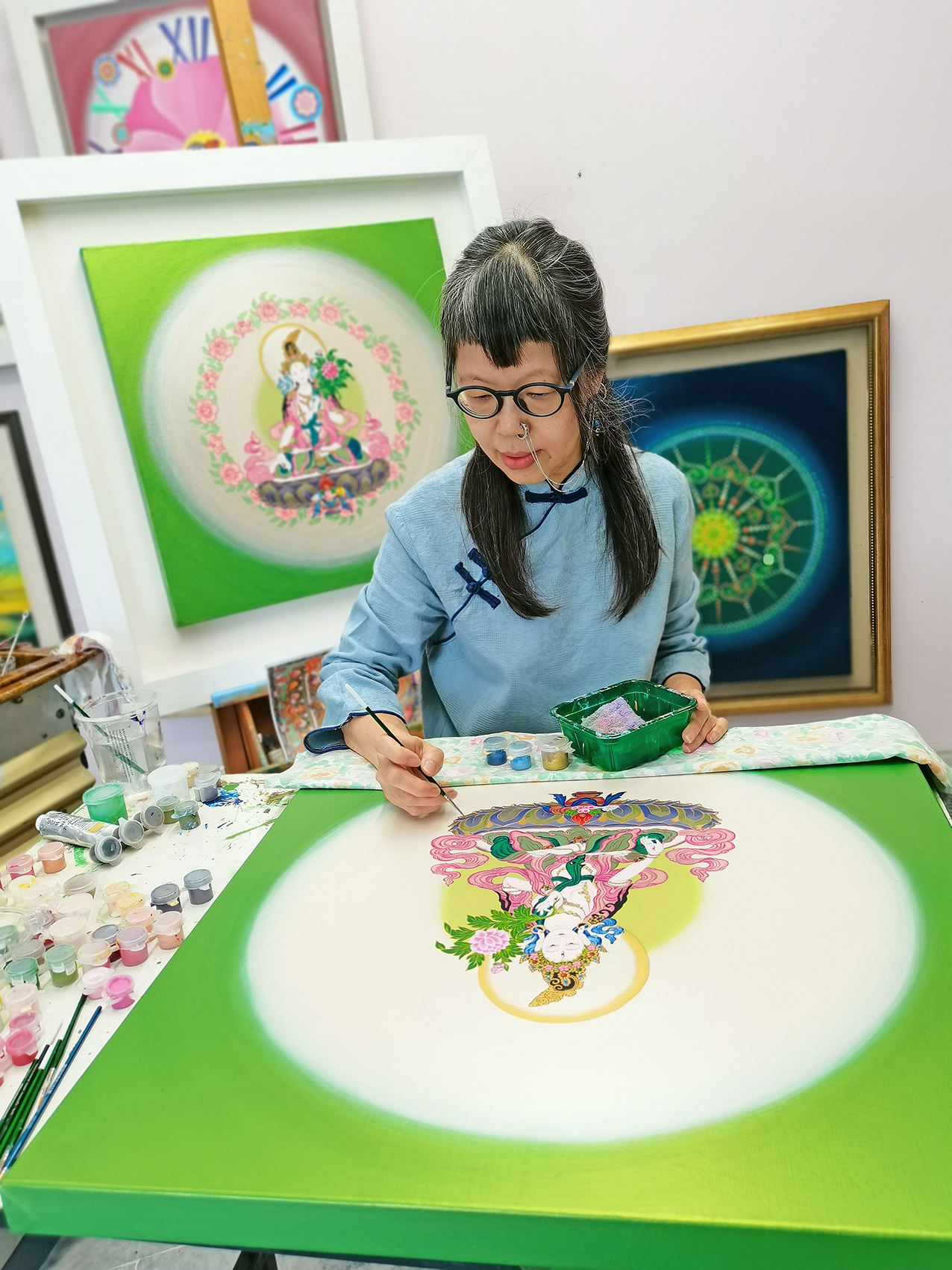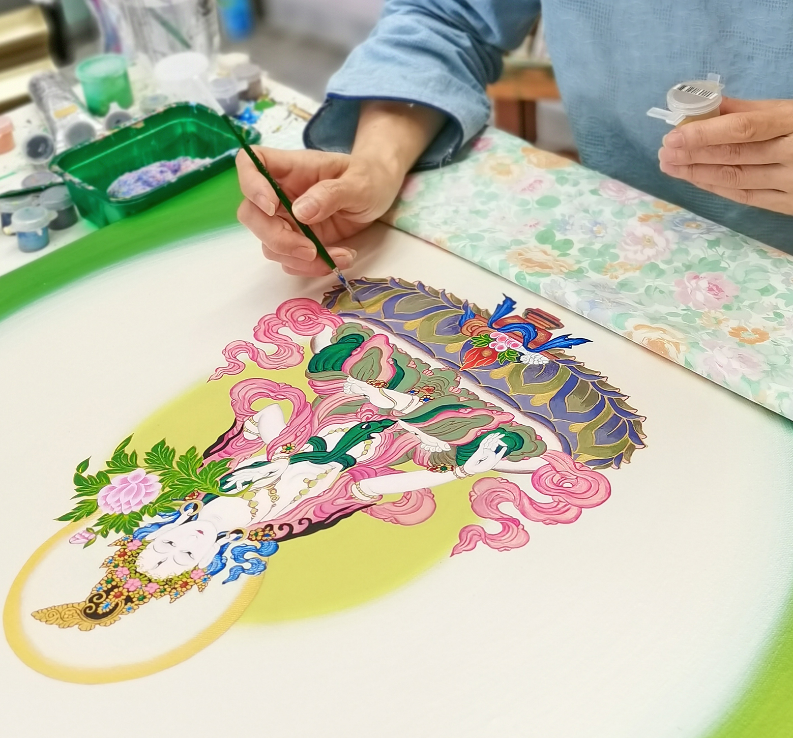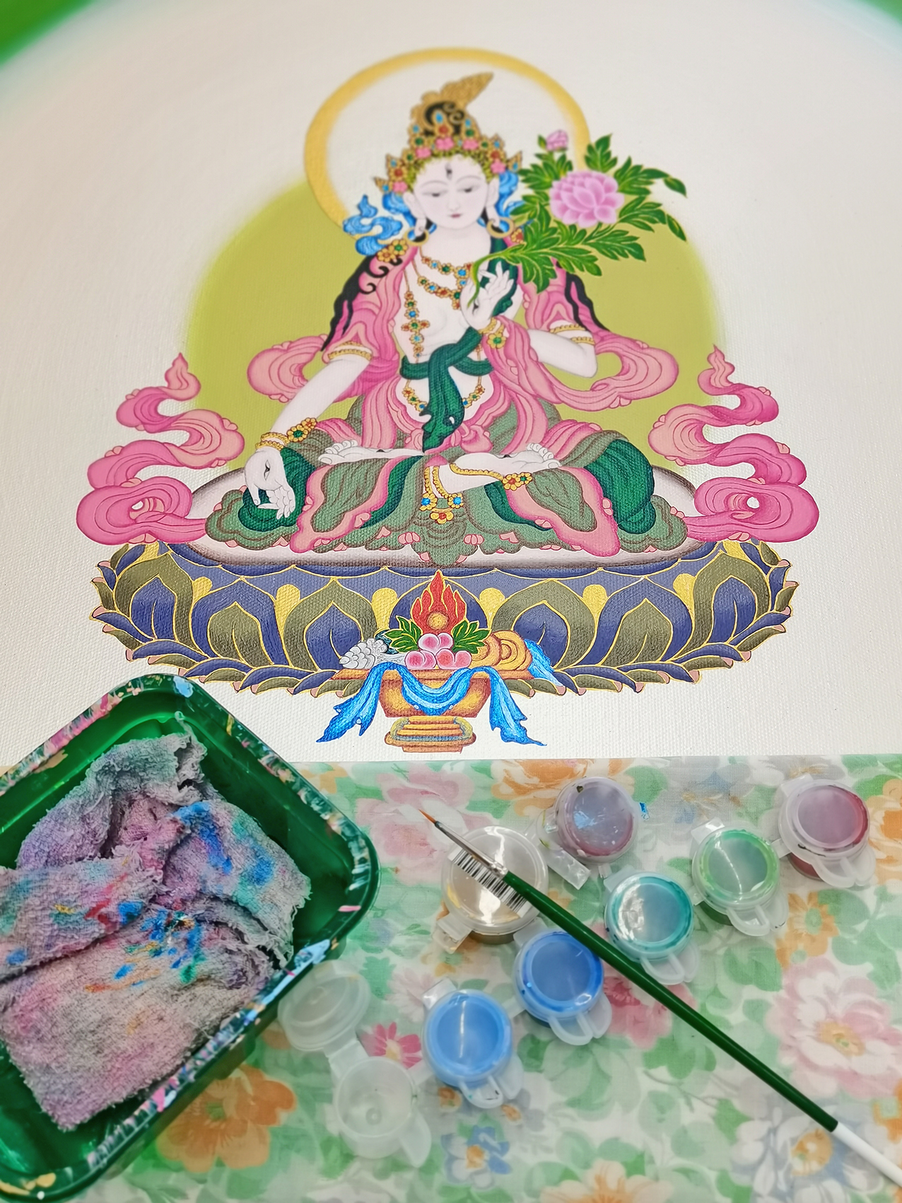 在我启动白度母〈慈悲〉的时刻,黄国鸿画师也和我同时启动了一幅佛像作品〈相〉 。