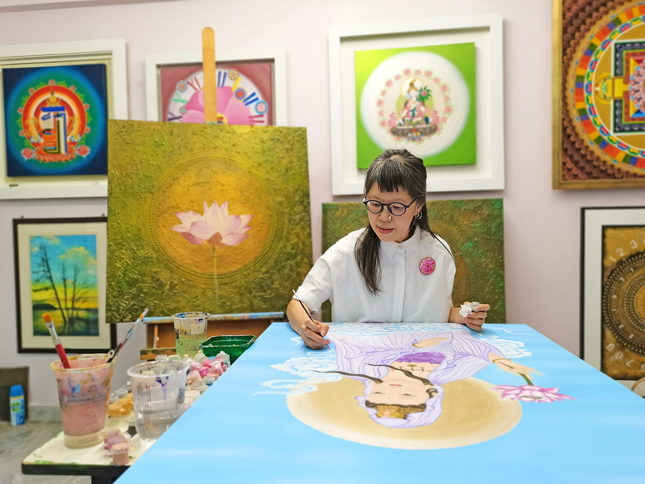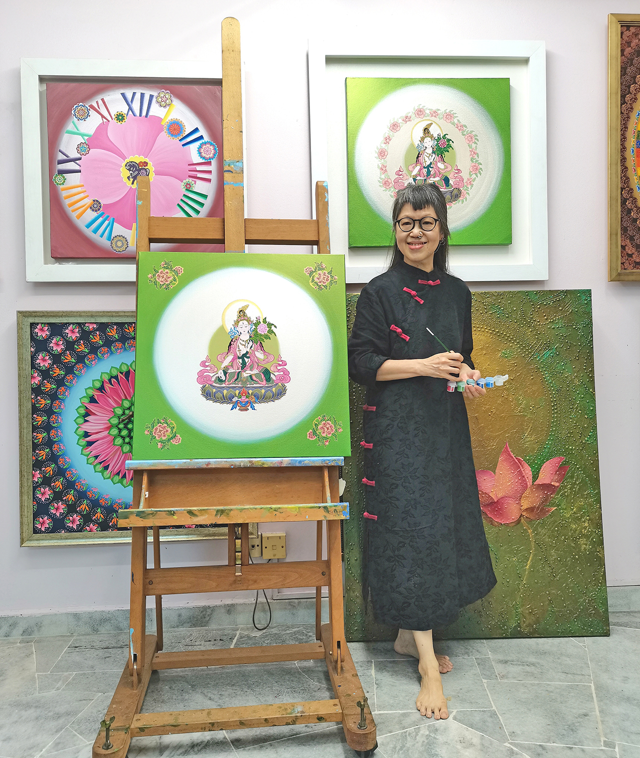 我只能擅用自己那份热爱的画笔,画出观音菩萨的〈悲悯〉和〈慈悲〉,来安抚那一颗脆弱不安的心。