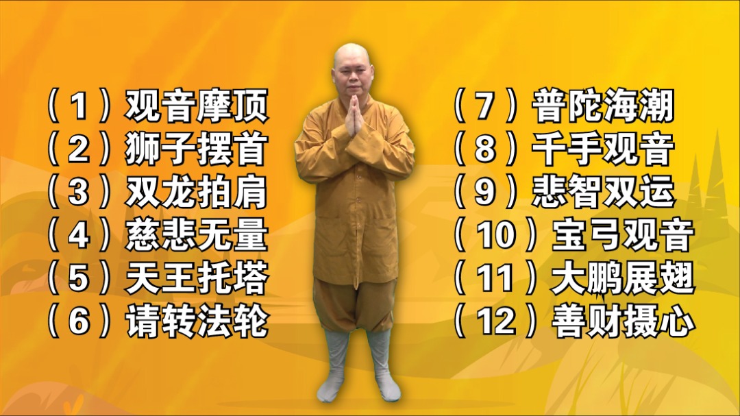 静中有动,动中有静,禅修,它不一定就是要闭上双眼,安静的坐在一个固定的位置上。 将禅修心法融入健身运动中,明吉法师研发的《观音十二手》简单易学,而且对平衡身心有很大的帮助。 每天一身汗,医生不用看,在忙与茫的日常生活中,给自己一点时间,好好的在动静有序的动禅中挥动身体以获得更大的能量,以更正面心态继续更美好的生活。