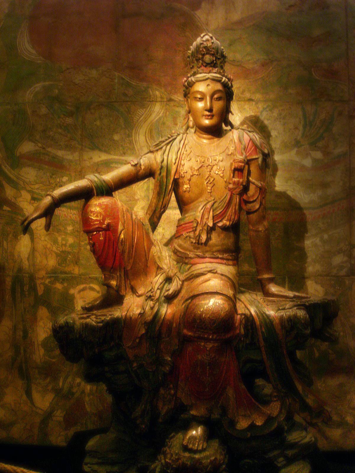 山西的辽代木雕彩绘水月观音菩萨像。现藏于美国纳尔逊艺术博物馆。