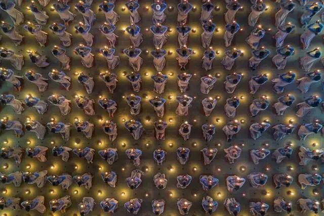 “在新年之际,成千上万的佛教徒在 Hoc Mon 区的 Hoang Phap 宝塔祈祷。他们点燃了数千支蜡烛,并在夜间祈祷。”