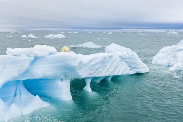 “北极熊在夏季从斯瓦尔巴群岛的冰山捕猎海豹,而海冰一直向北消失到 83°N。”