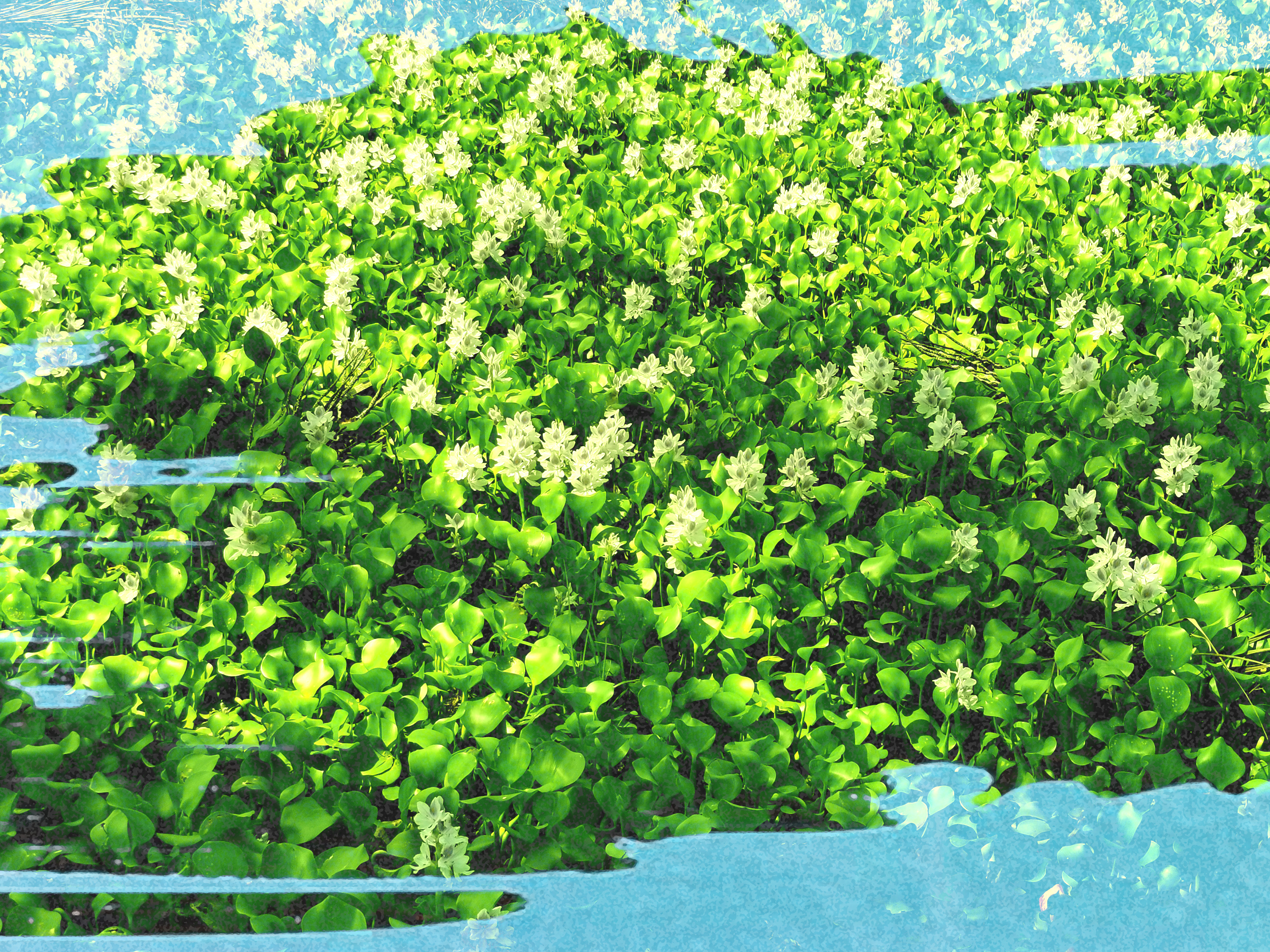 每次到中国各地旅游,湖面上都生长着许多浮萍,我喜欢驻足观赏,也喜欢用数码 相机把它们照下来,放在自己的电脑桌面上观赏。