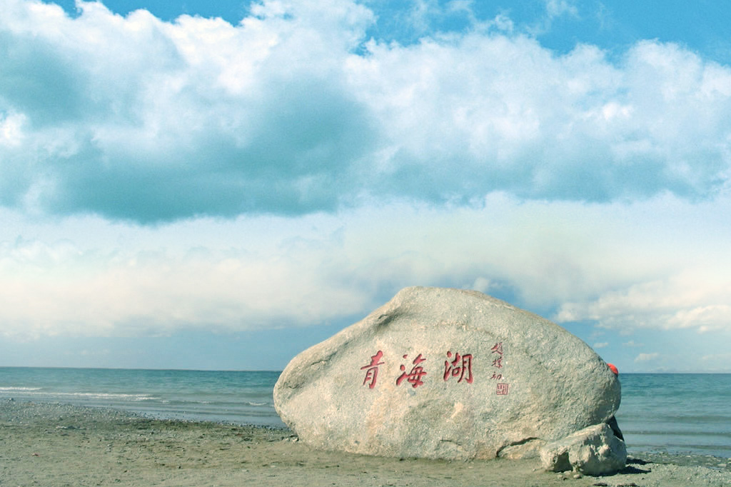 临近傍晚,我们才来到了青海湖,惟因季节关系,天色还蛮亮。面积比新加坡岛还大六倍的青海湖,实际上就像大海,但比较平静,宛如绿地上硬硬镶入的一块蓝色玻璃,而且是光灿灿的。许是看惯大海了,我也没怎么被如此大面积的水「感动」到,不过还是非常高兴有缘见证中国第一大湖,尤其是在如此一个临近天空的高海拔地带。