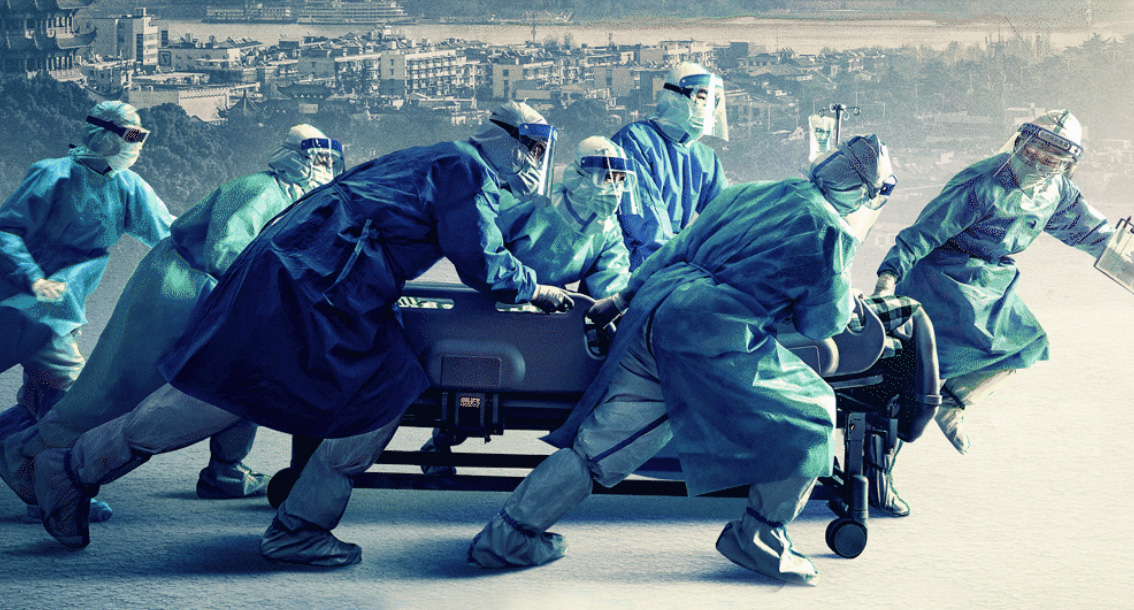 当然让人最感动的是疫情里的中国医生。医护人员脸上的口罩压痕和满脸淤痕,插管、拔管、除颤等抢救镜头,勇敢坚毅充满力量的眼神……