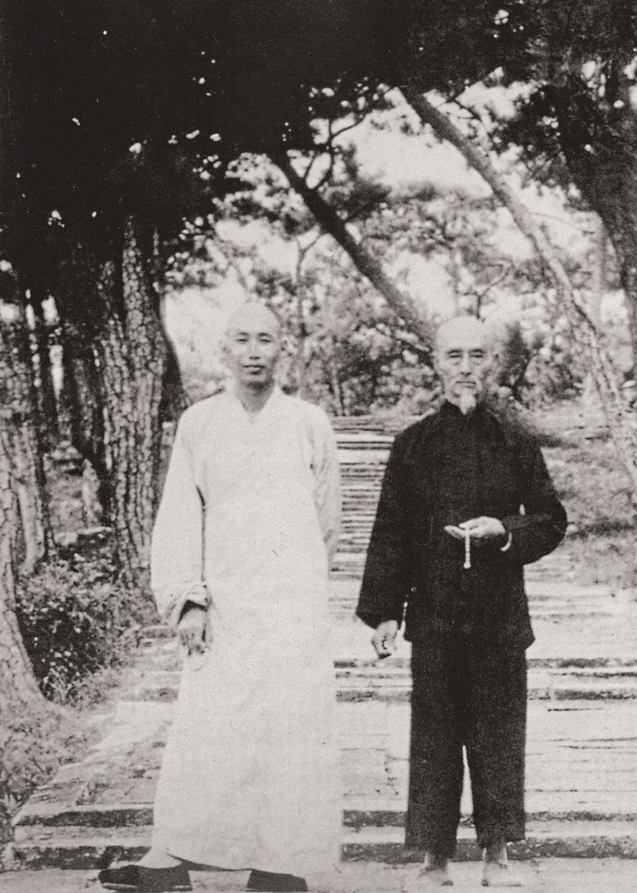 上镜下盦日光禅师,生于光绪26年(1900),福建莆田人,俗姓李。九岁那年,他随出家的叔叔到西禅寺玩,见寺里十余个小童披剃,他也要求跟着剃头。少年时,他正式依福州庆城寺常悟法师剃度出家,接曹洞宗之寿昌法脉,第51代传人。出家数年后,镜盦法师便受具足戒,过后到鼓山佛学院受学,并且担任虚云和尚(1840-1959)的侍者,后来提升为知客。正值青年的镜盦法师,在鼓山期间经历了由虚云和尚所领导的复兴与改革。在镜盦法师记忆中,鼓山执行规矩严谨的丛林制度,吃大锅饭。他在禅坐时挨过虚云和尚的香板。1930年代初,全球经济低迷,中国东南沿海的广东和福建,成了因受经济风暴所波及,南洋遗返者的落脚地。1933年初,日军占据山海关,十九军在福建举事,全省寺院停止留单,只有鼓山仍然保留海单。海单,持有戒谍衣钵的出家众,通过知客登记同意,就可挂单食住。在这么贫穷及动荡的时代,6镜盦法师当在鼓山担任知客,必然具备各种应对能力。
