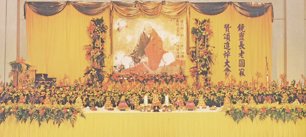 2000年1月12日 (农历己卯年十二月初六),晚上九时许,镜盦长老示寂于八打灵音亭。马来西亚中文媒体将此新闻置在头版;英文媒体也进行报导。南北藏传的长老,都在追悼大会上诵经。当时,马来西亚共有五个华人部长,其中四个人的名字出现在名誉主席团中。朝野政坛领袖:马华公会会长林良实;民主行动党全国主席林吉祥都前来向长老致礼。达摩难陀长老 (Dr. K. Sri Dhammananda Nayake Maha Thera) (1918-2006),这位被受敬崇及被教界誉为「马来西亚英语系佛教之父」的长老,给镜盦写下了一段中肯的话语: