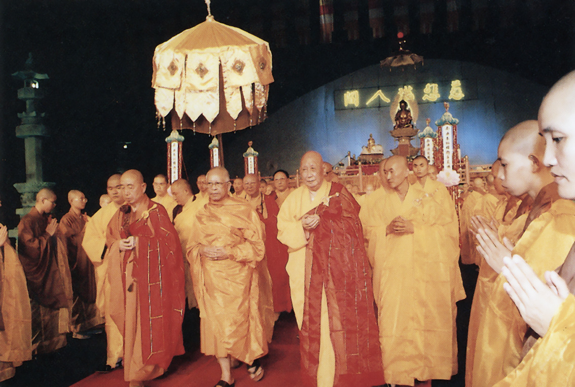 一法遍含一切法,一月普现一切水,在慈悲满人间的盛会中、在琉璃光遍照的药师玉佛开光大典、在万众一心布满庄严海的国家室内体育馆、在凡圣同修呈自性、充满感激的泪光闪烁中,镜盦长老的悲愿圆了。