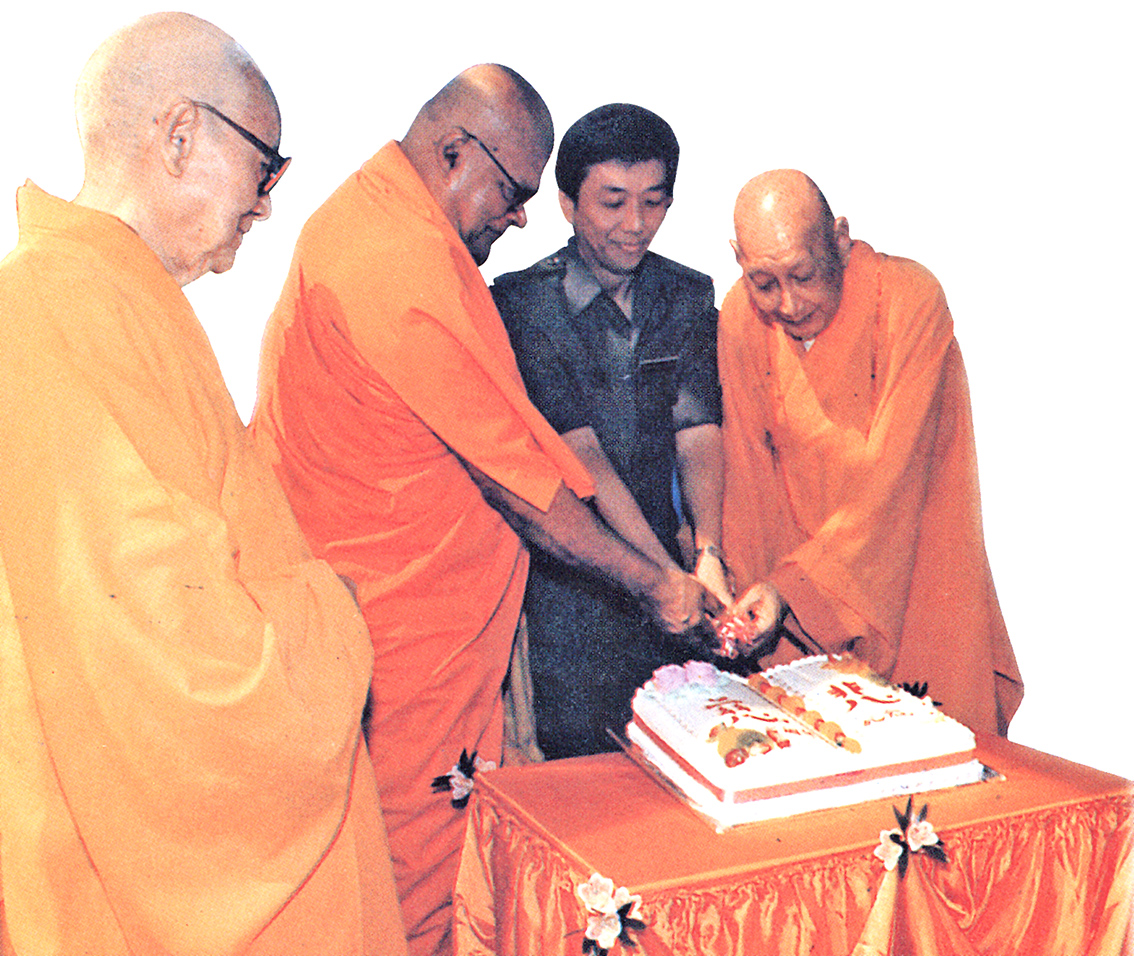 《慈悲》庆创刊六周年,由内政部长拿督黄家定,名誉顾问伯圆长老、十五碑佛寺住持达摩难陀长老等,共切《慈悲》六周年蛋糕。