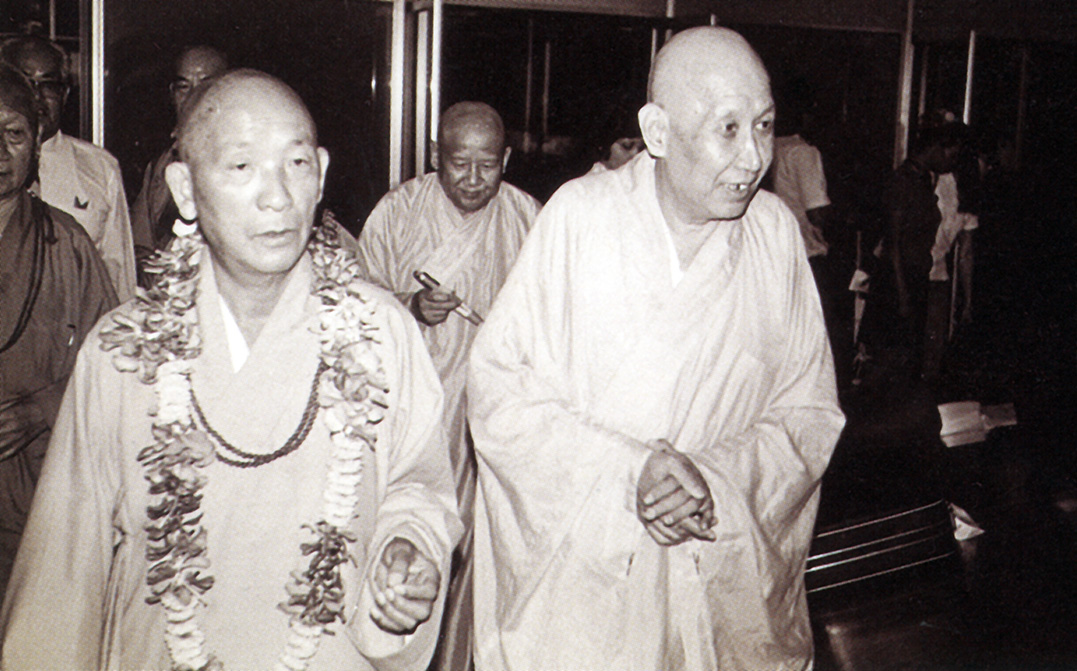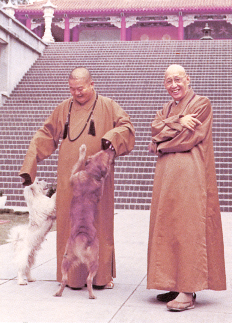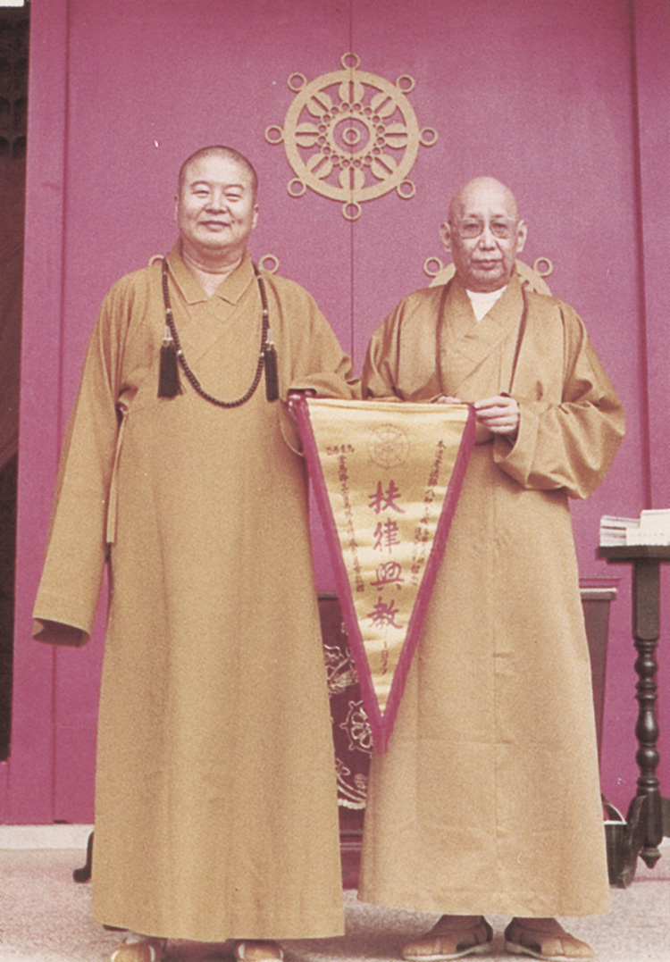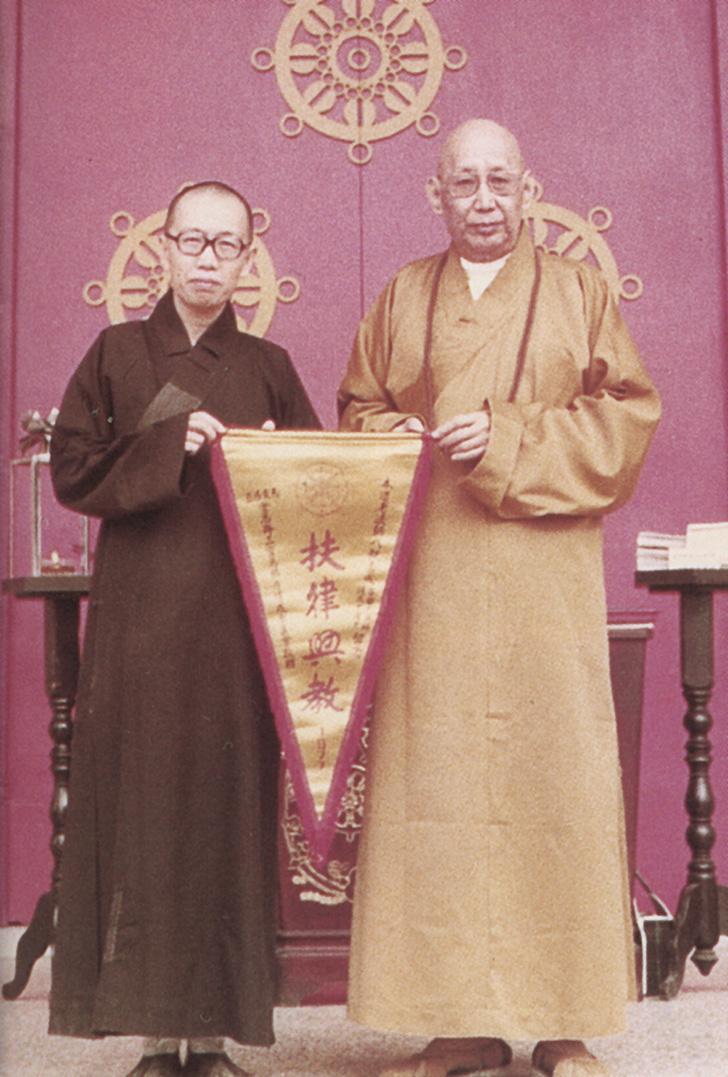 ◆ 竺摩上人与镜公合摄于大雄宝殿。