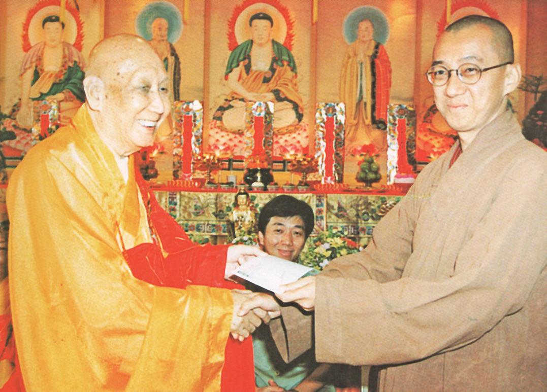 ◆ 左为杨月龄居士、真禅长老、超尘长老、广余长老。