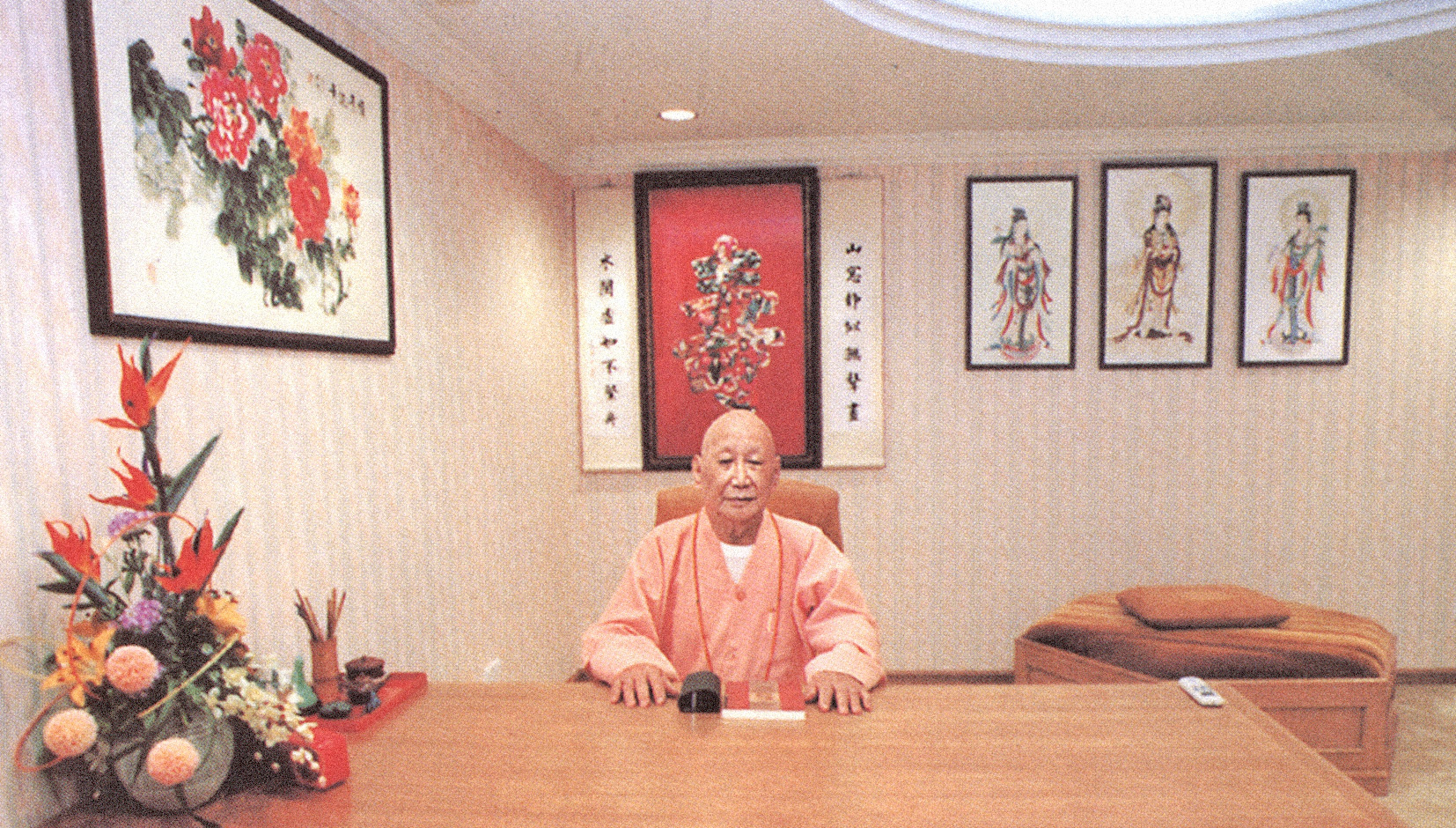 第一天到观音亭教课时,先拜见长老。长老给我的印象是和蔼可亲的一位长者。他特别叮咛我要把这一群学生教好佛门礼仪。这一群护法团确实把佛门礼仪学得很快,其实我知道这都是长老亲自教的。我非常感恩长老的悲愿及给我有机会与护法团广结善缘。