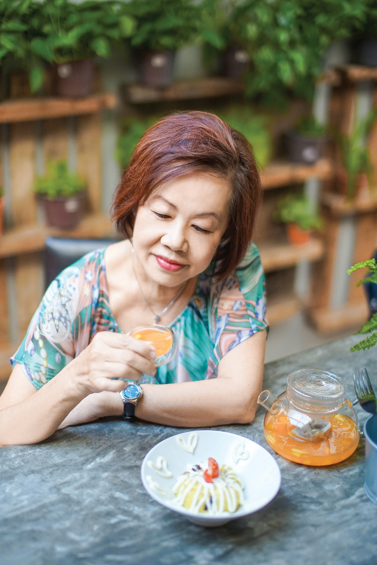 用料理与众人结善缘,她的好厨艺不仅受到亲友、学生的赞许,当年镜盦长老请她担任八打灵观音亭每年卫塞节庆典、捐血运动及法会的主厨,由于她擅长运用自然、简单的食材,变化出多样菜色,总让信众们吃得十分欢喜、赞叹,既吃得到食物的原味,又不失创意与艺术美感,不仅是味蕾的享受,更是心的飨宴。