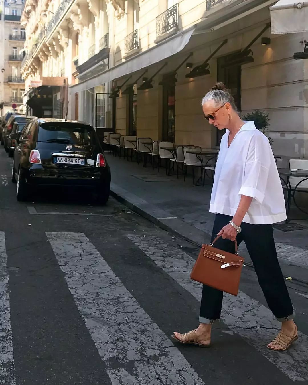 当大家纷纷为了白发而烦恼,Sylviane完全不受影响——她从18岁开始“少女白”,早早学会跟白发和平共处,从没考虑过染发,“这是好好活过的证明啊,我才不要被夺走这些特质。”