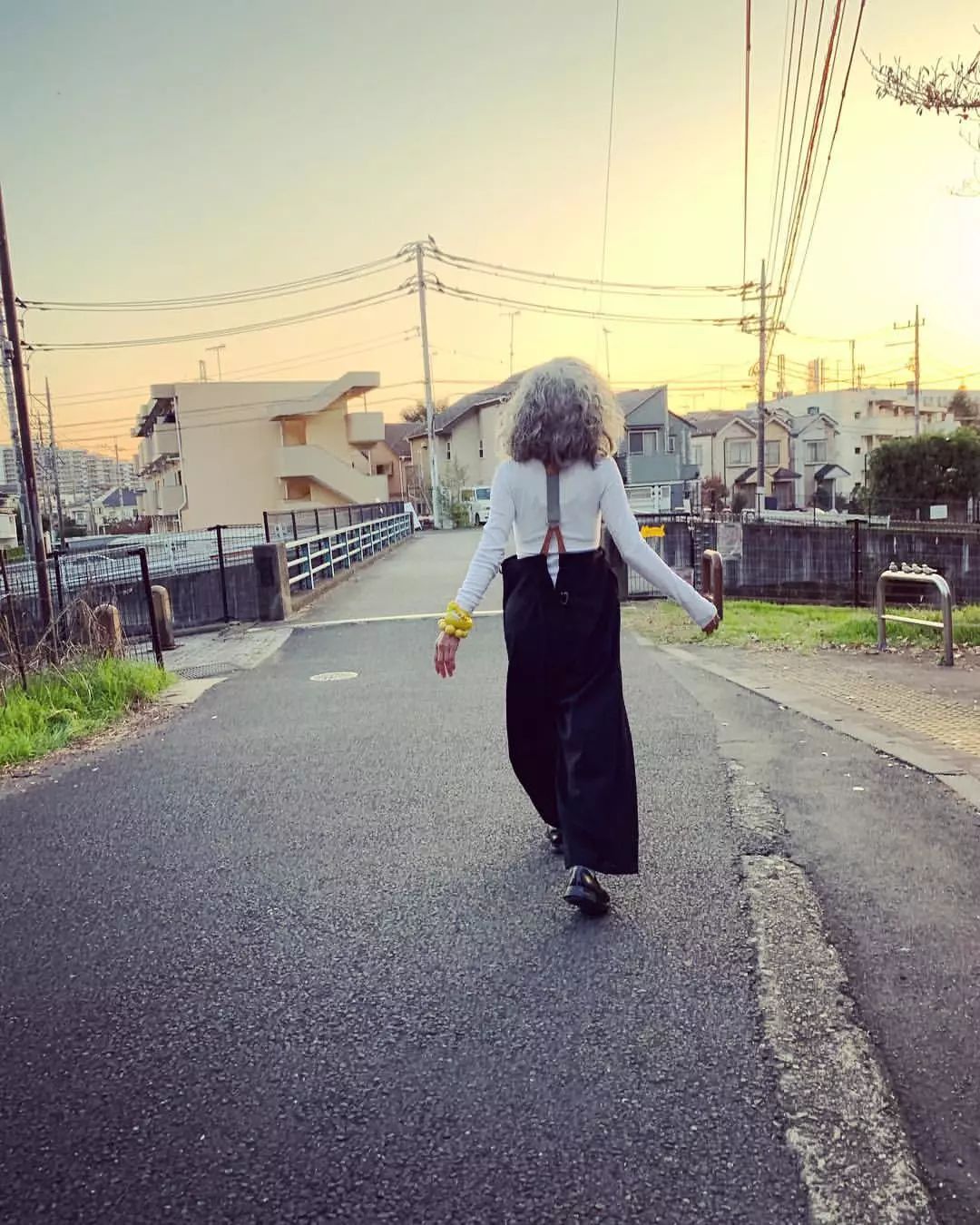 Masako可不是什么圈内人士,她的爆红纯属偶然:某天她的女儿在Twitter上发了一张妈妈的照片,爆炸卷的中长银发,一身黑白,手插口袋酷到不行,当即吸引大批关注。