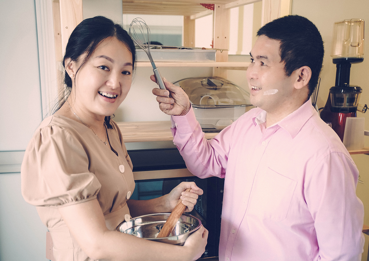 走进昭文和莎莎小俩口的爱巢, 你会闻到阵阵香气, 充满爱和希望的气味。那是他们温馨的小屋, 也是他们共同打造的[吃不胖的甜品〕烘焙屋。