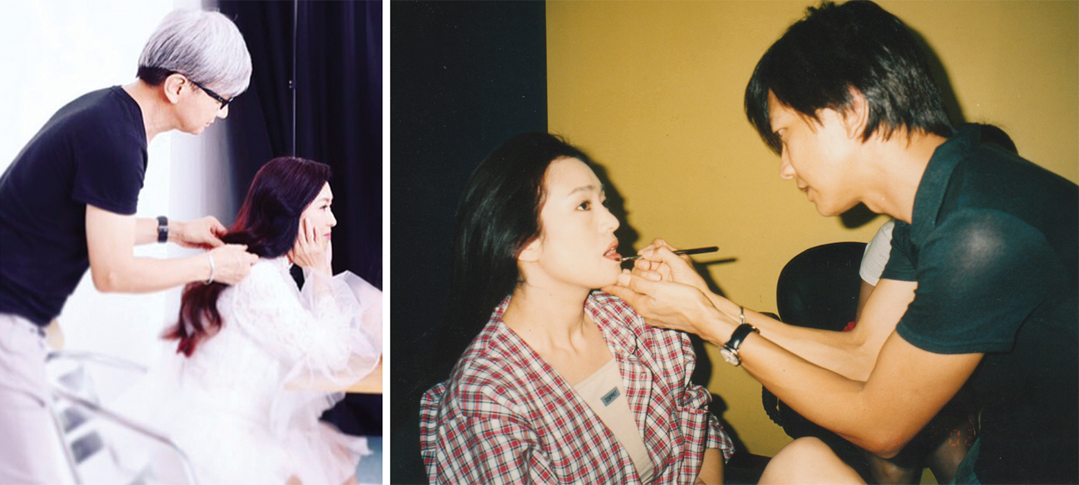 (左)为郭晶丽精心化出了一个毫不俗气, 自然脱俗的妆容。(右)为中港台著名明星巩利化过妆,让她在镜头前尽显自信和各别独特的魅力。