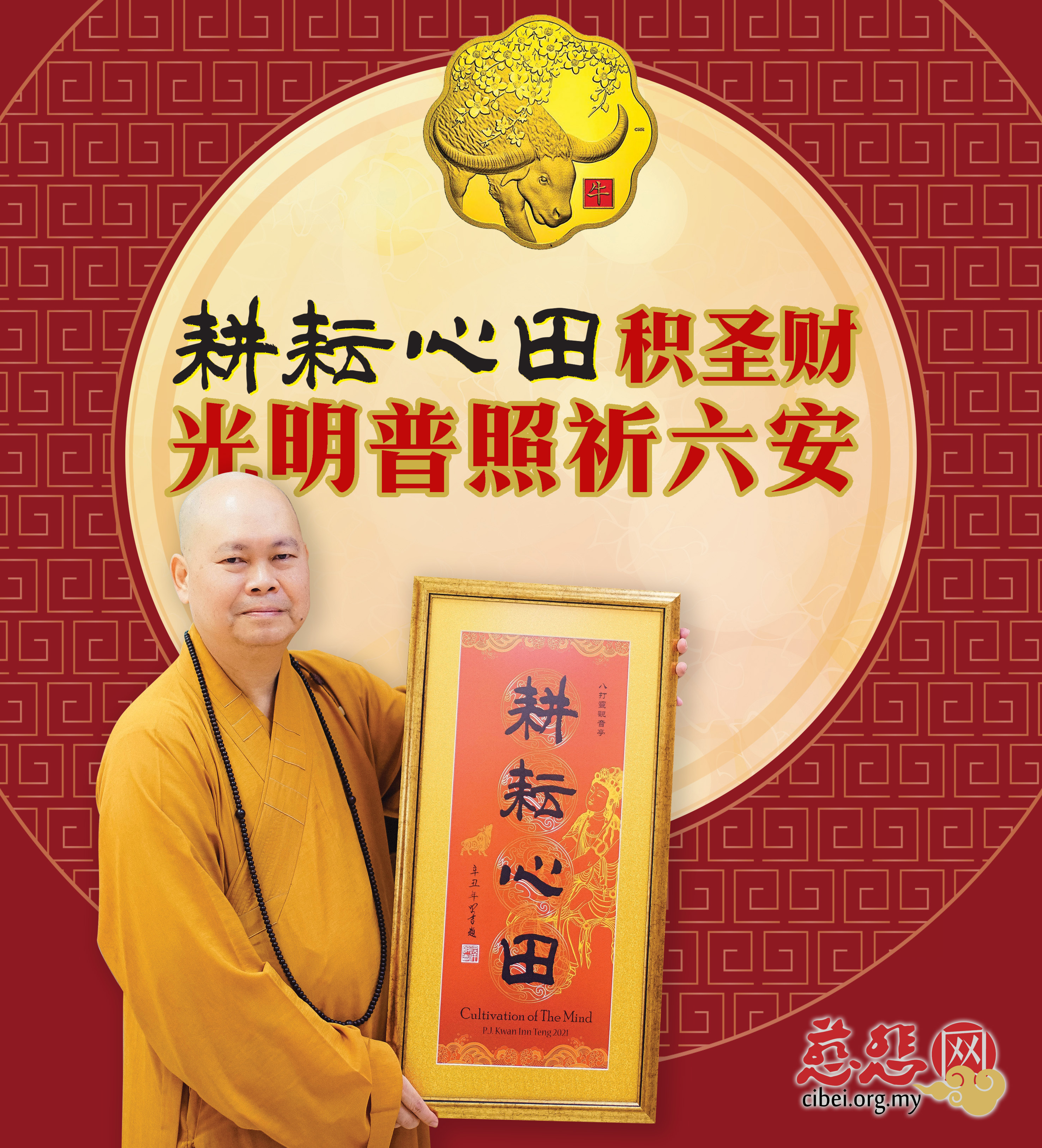 在去年(庚子年)明吉以“广修圣财”的法语呼吁大家不要只关注物质的财富,而忽略了精神的财富,希望纠正过于偏向物质财富的追求,而今年(辛丑年)的法语,更是想要教导大家进一步的“耕耘心田积圣财,光明普照祈六安”。