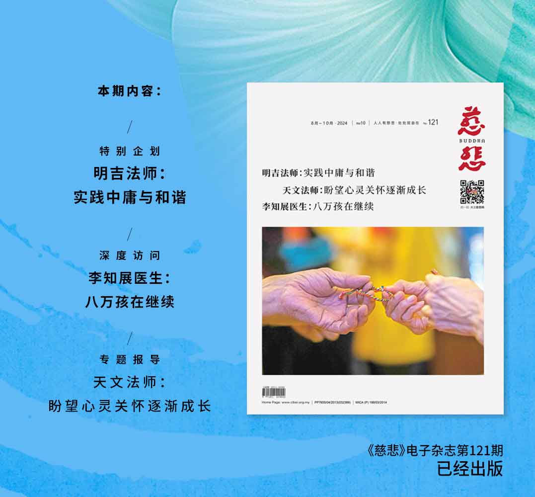 现在也推出内容相同的电子版《慈悲》杂志,1年4期 只需RM 40,为了回馈30年来的《慈悲》杂志读者的热心护持,凡订阅电子版《慈悲》杂志3年;即赠阅《慈悲食谱》第2集,有关订阅详情请浏览《慈悲网》。
