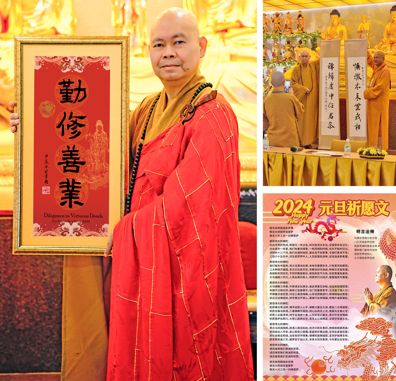 在这新的一年,明吉法师真诚的祝福大家勤修善业,身心和安、家庭和乐、事业和顺,并祈愿诸佛菩萨加被,让我国风调雨顺,国泰民安,以及世界和谐,战火熄灭,各地少灾少难。