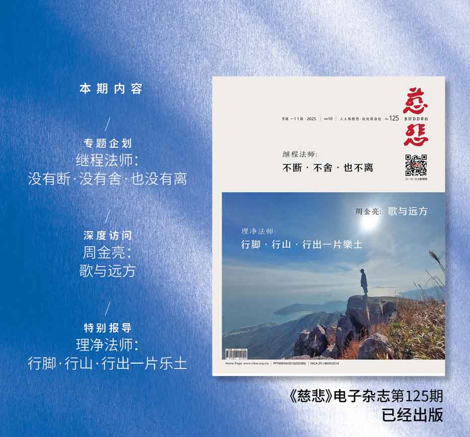 现在也推出内容相同的电子版《慈悲》杂志,1年4期 只需RM 40,为了回馈30年来的《慈悲》杂志读者的热心护持,凡订阅电子版《慈悲》杂志3年;即赠阅《慈悲食谱》第2集,有关订阅详情请浏览《慈悲网》。