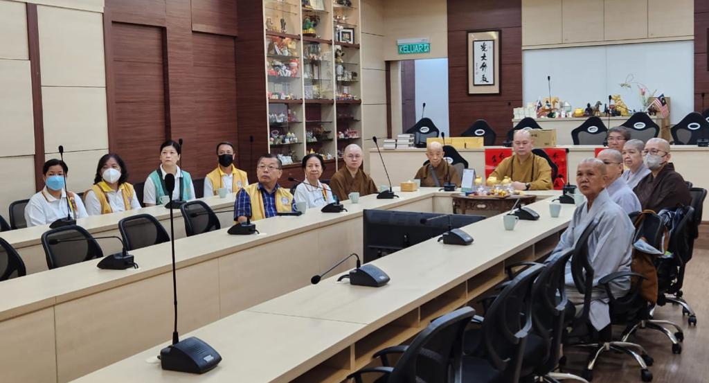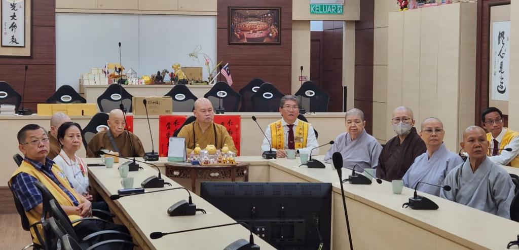 (11/2/2023)八打灵观音亭亭住持明吉法师于2月11日上午,率同马佛总雪隆分会、八打灵观音亭及观音世界约100名僧俗二众,专程前往仁嘉隆佛光山东禅寺,向上星下云大师献香花致敬,并于弔唁大堂诵经报恩,感念大师对佛教与人间的贡献!
