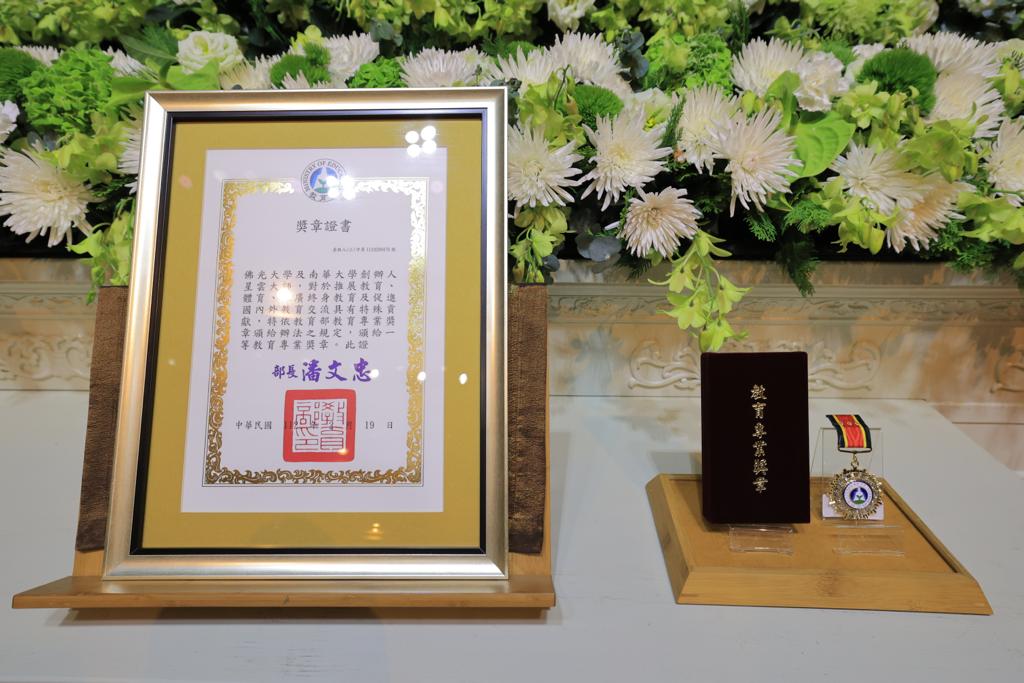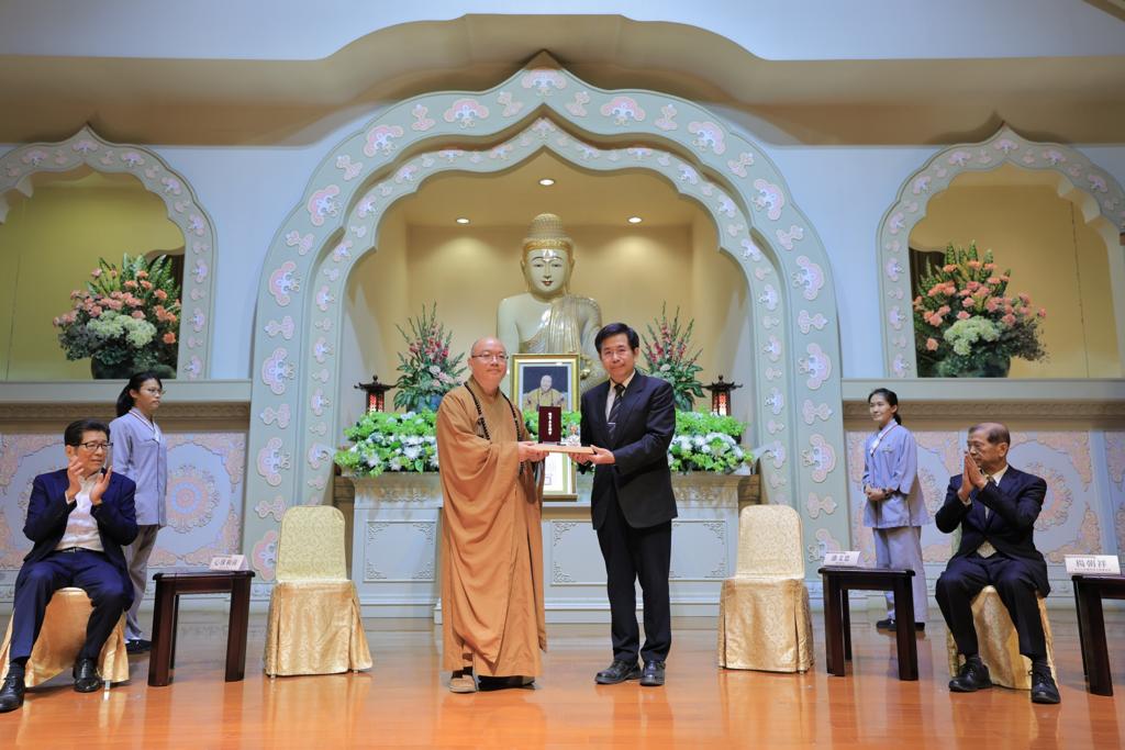 潘文忠于颁赠“一等教育专业奖章”致词,推崇大师对国家社会、教育付出不遗余力,弘法也以培育人才为首务,从大学到幼儿园都能看到大师的用心。西元1990年在美国设立西来大学更创下华人在美国设立第一所综合大学的记录,大师还在澳洲办南天大学、菲律宾设光明大学等。