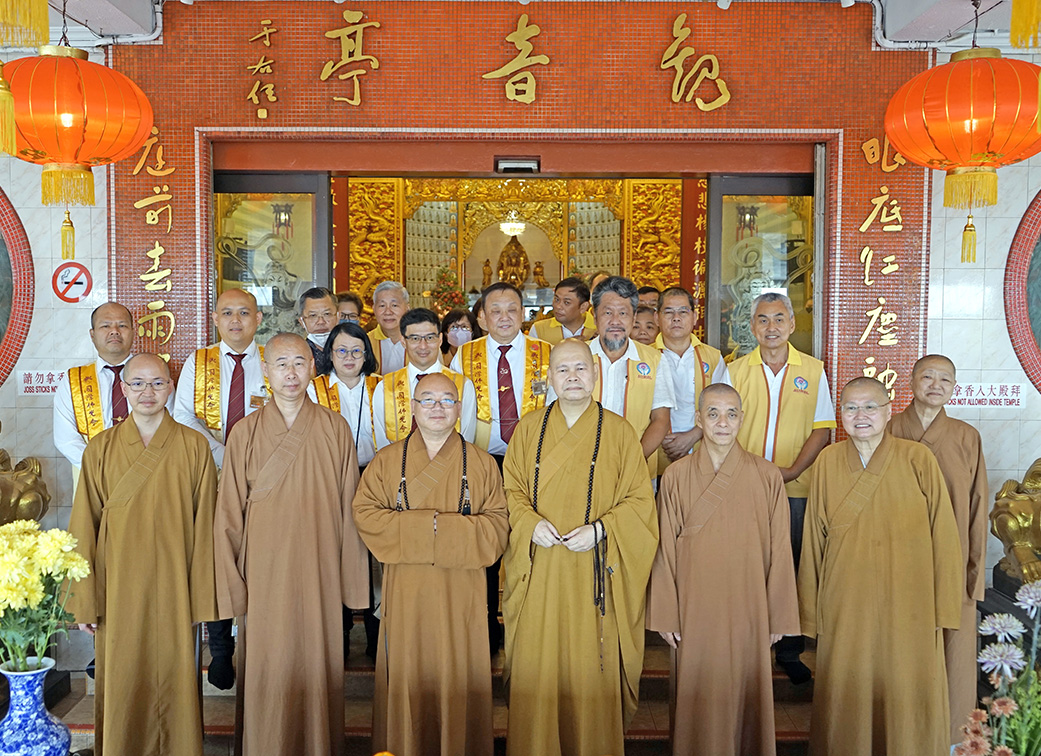 心保和尚日前率團拜访八打灵观音亭,前排左起为慧靖法师、慧思法师、心保和尚、明吉法师、慧性法师和觉诚法师。
