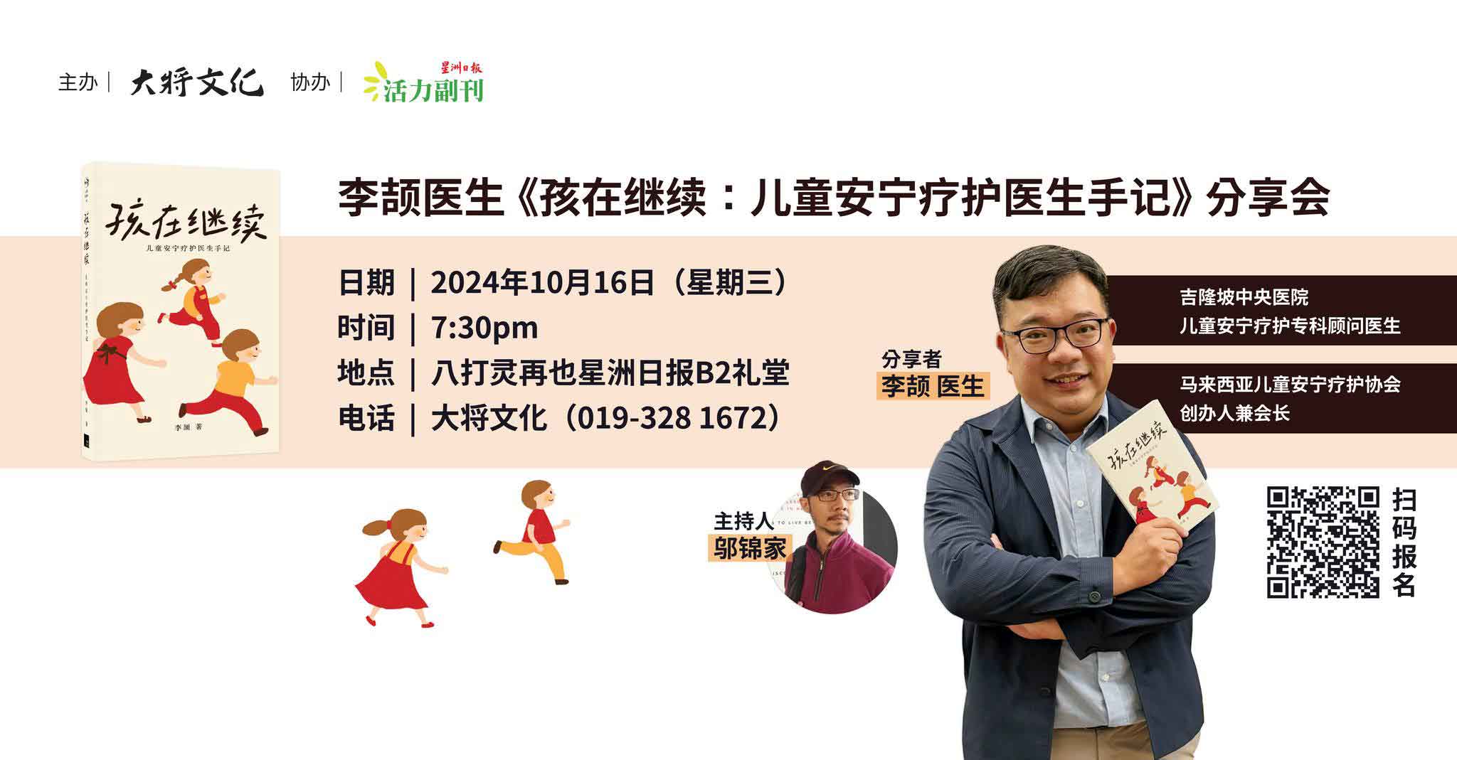 这一次,大将文化带着爱和希望,来到星洲日报和大家见面。现场设有 QNA 环节,观众可以直接向李颉医生提问,共同探讨儿童健康与安宁疗护的热点问题。