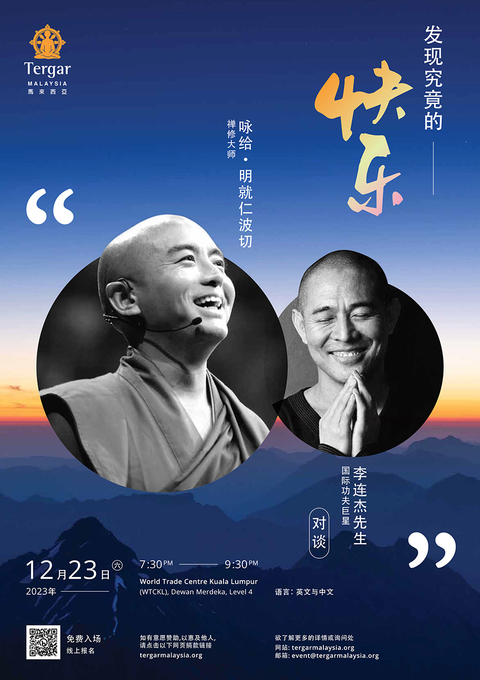 期间他将与李连杰一同主持一场题为“发现究竟的快乐”的公开讲座,活动将于12月23日(星期六)晚上7时30分,在吉隆坡世界贸易中心(WTCKL)举行,免费入场,热烈欢迎各界人士前来参与。